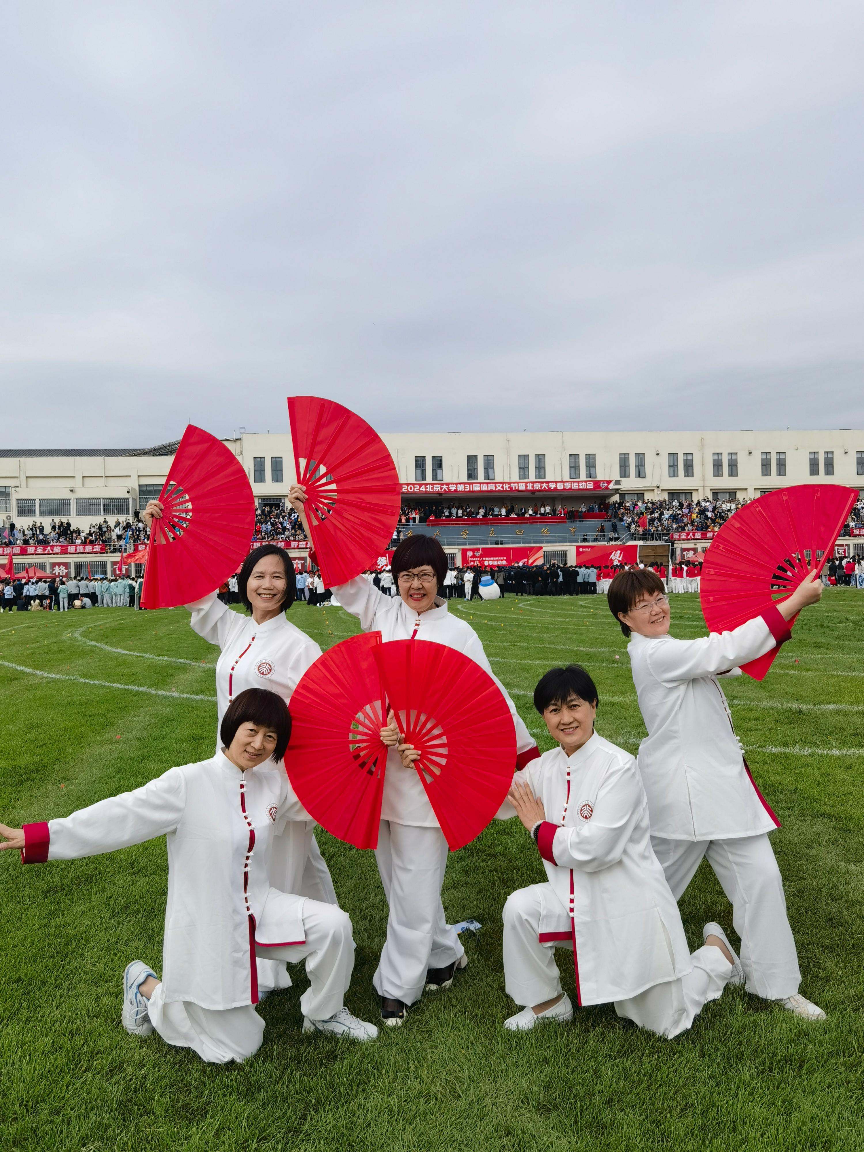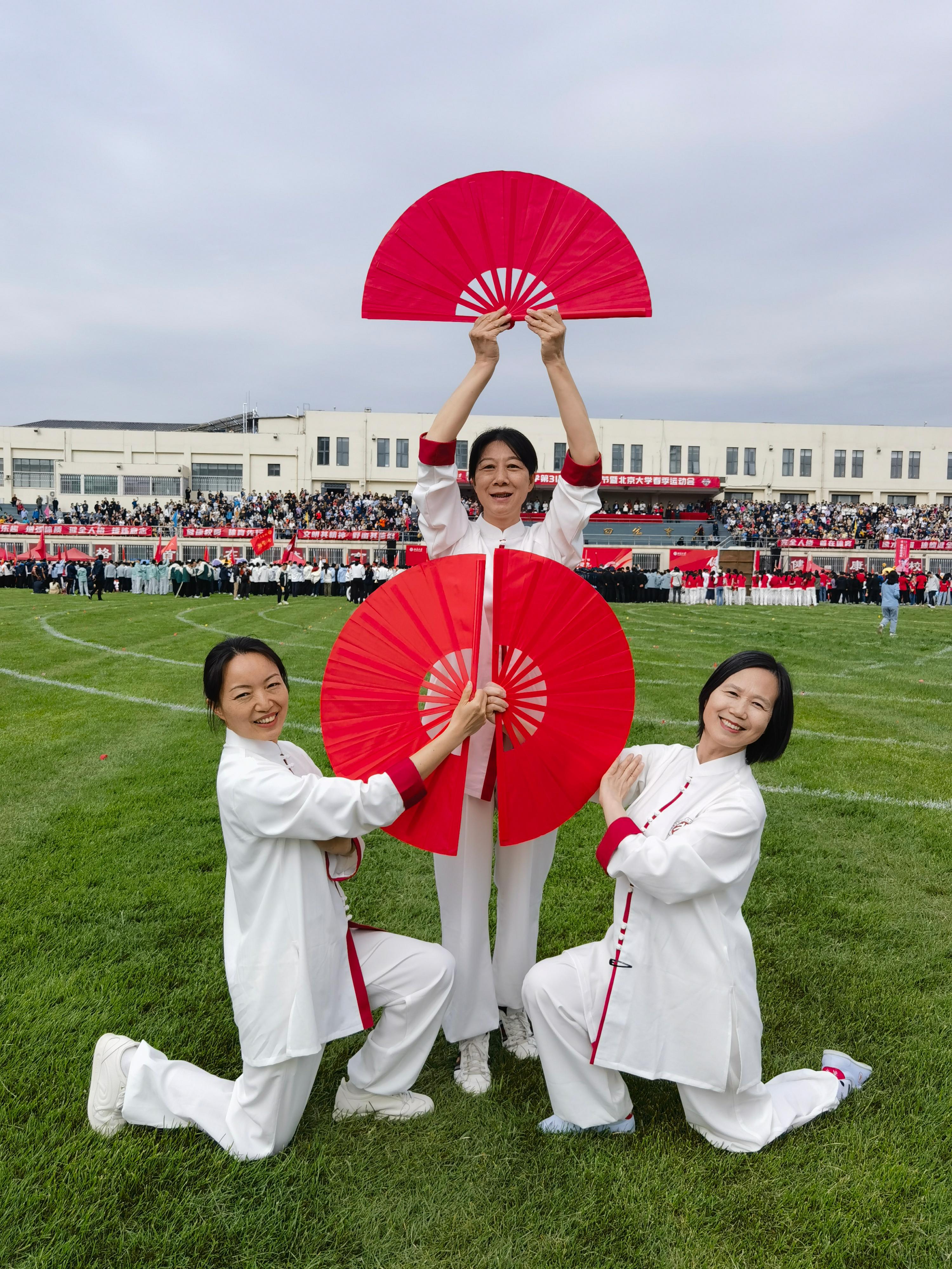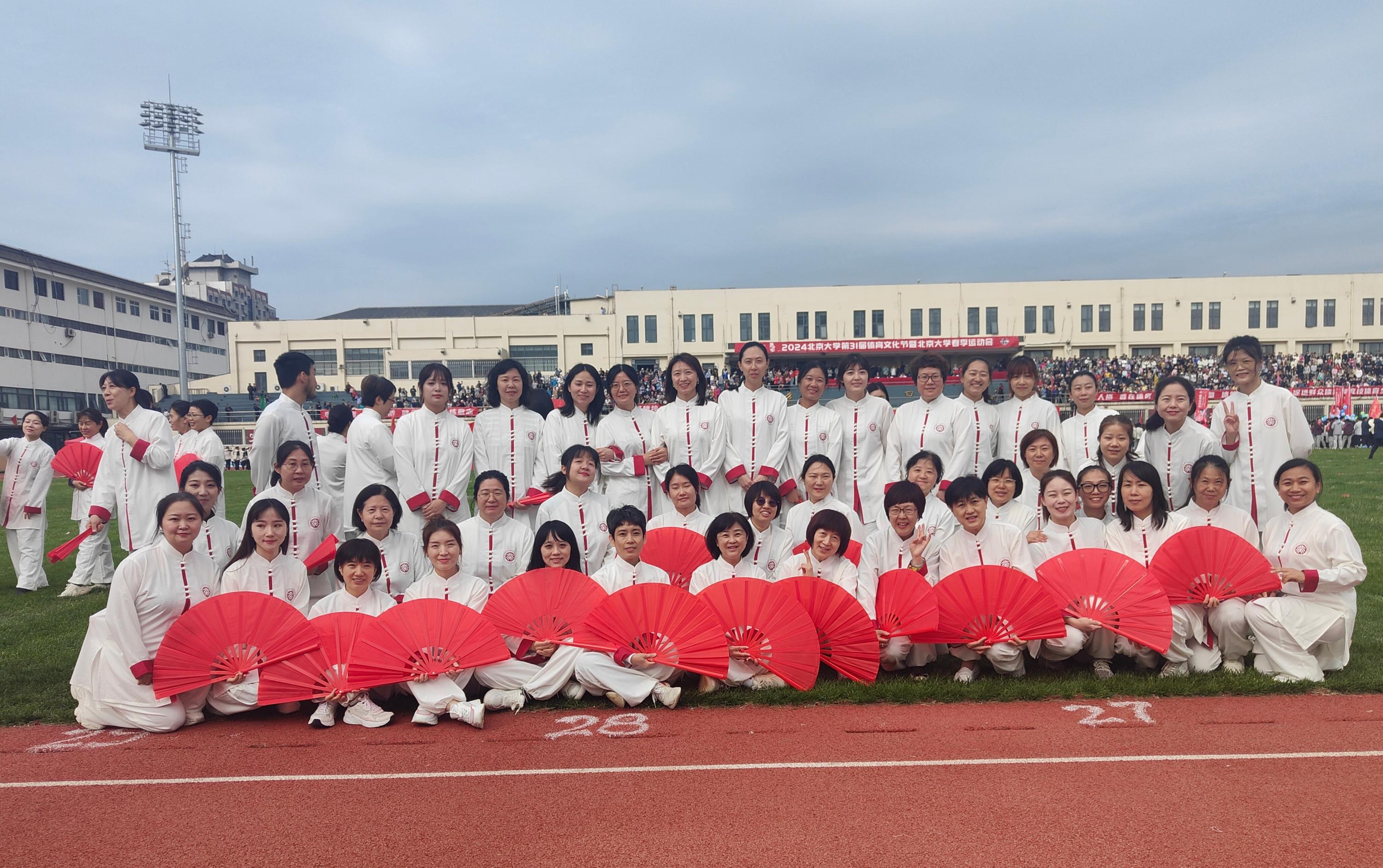 校医院50余人参与了大型功夫扇团体操的表演,今年的团体操对动作及开扇的要求极高,队形跑位也非常复杂,大家辛苦练习了一个月,每次集中训练都积极参加,在表演时发挥了最好的状态。