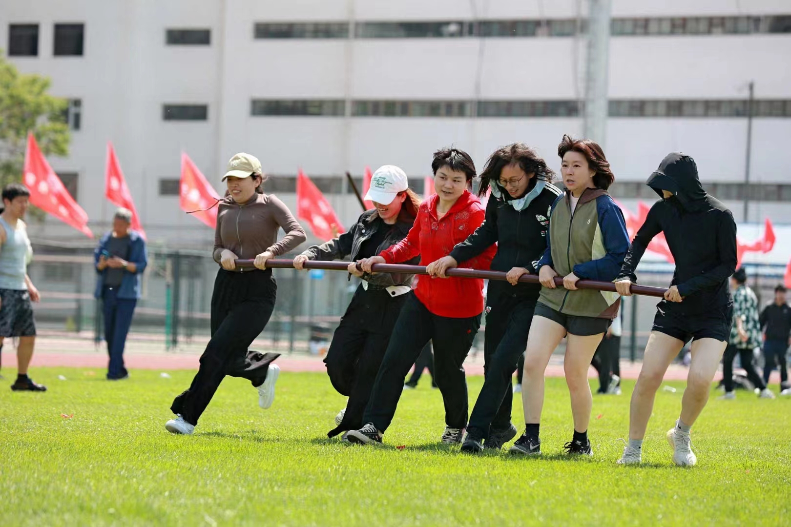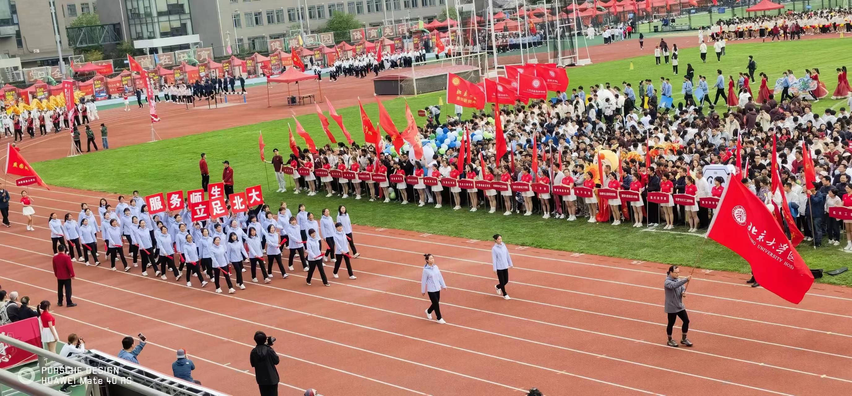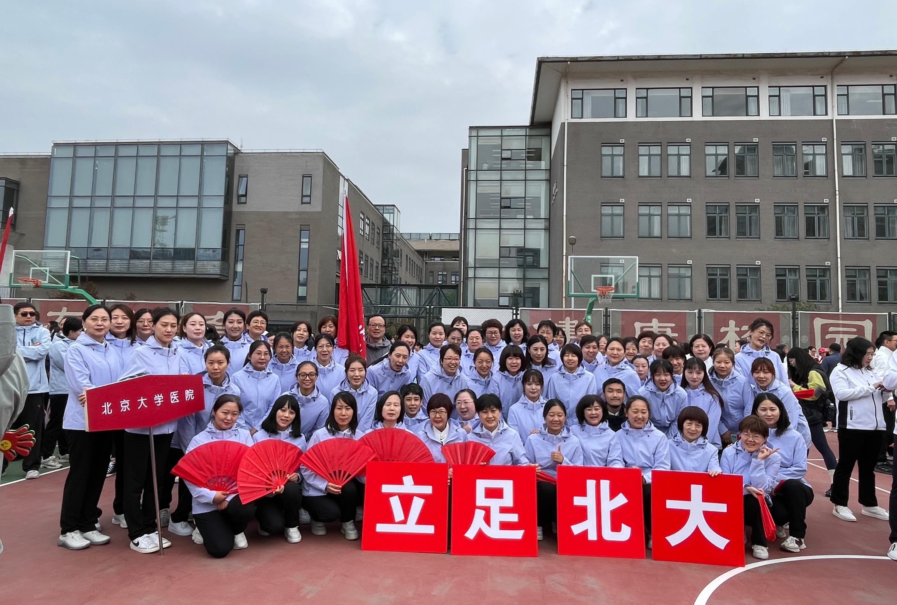 四月的校园生机勃勃,在这春意盎然的日子里,迎来了北京大学第31届体育文化节春季运动会。校医院职工在紧张的工作之余,传承校医院的光荣传统,积极参加各项比赛,在运动场上燃烧汗水与激情,绽放着青春与梦想。入场式,大家在党委书记兼工会主席朱建华、院长云虹的带领下,踏着坚实的步伐,英姿勃发,主席台前齐声高喊:“立足北大服务师生”,代表着守护全校师生健康安危的决心。