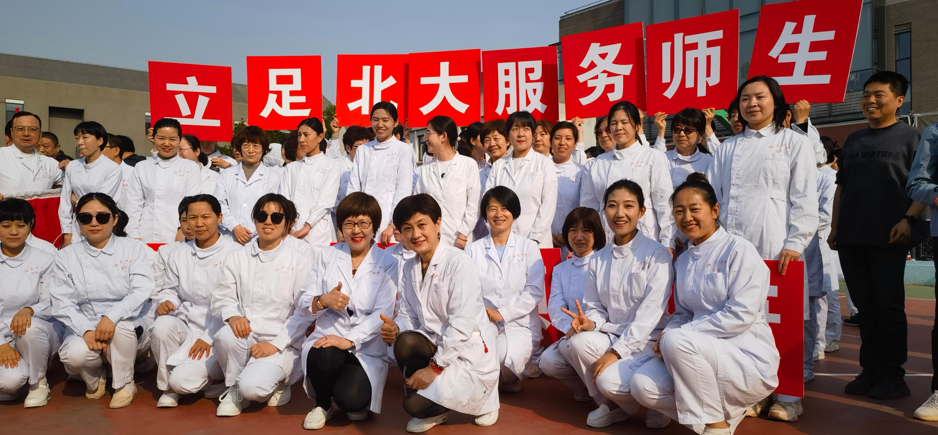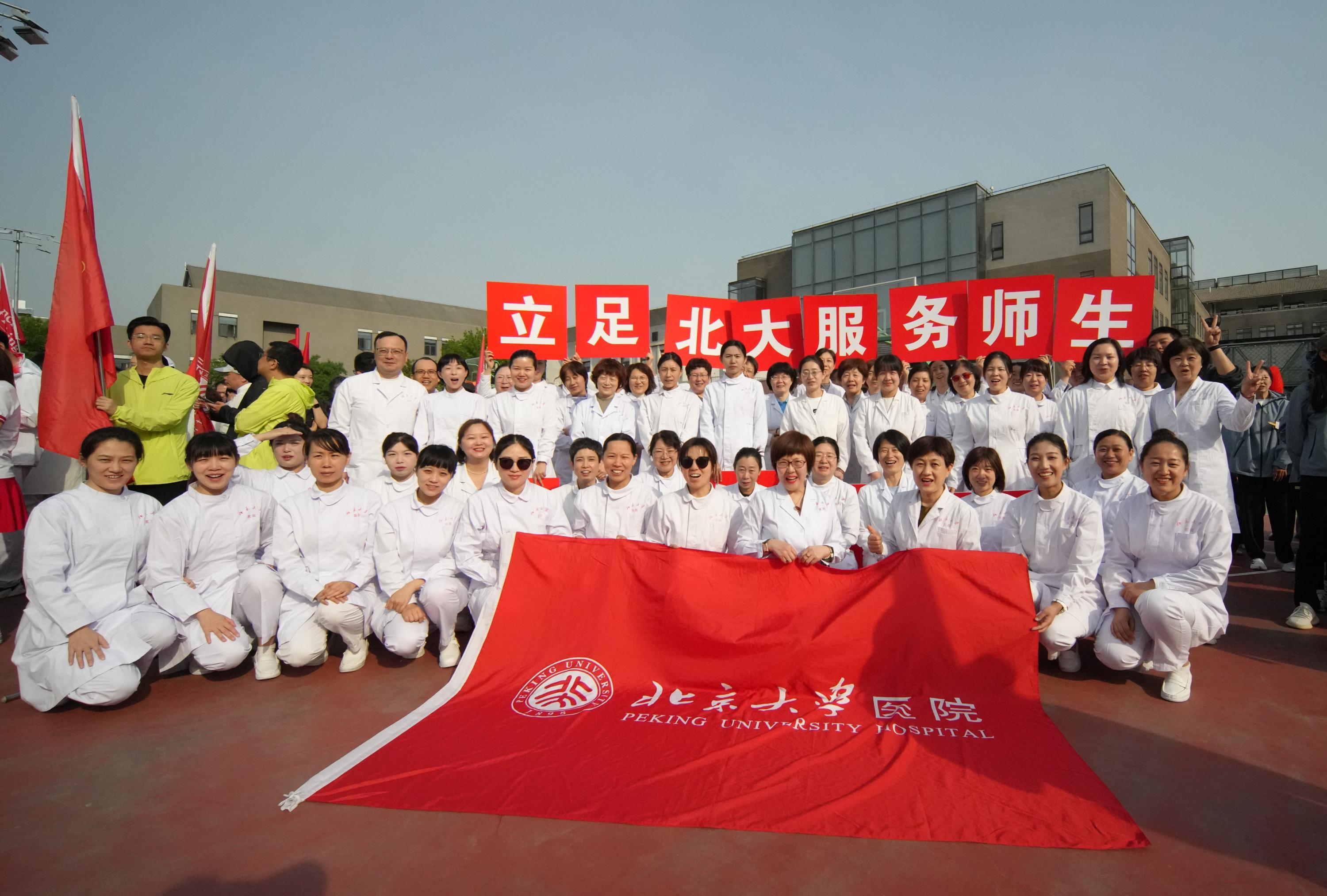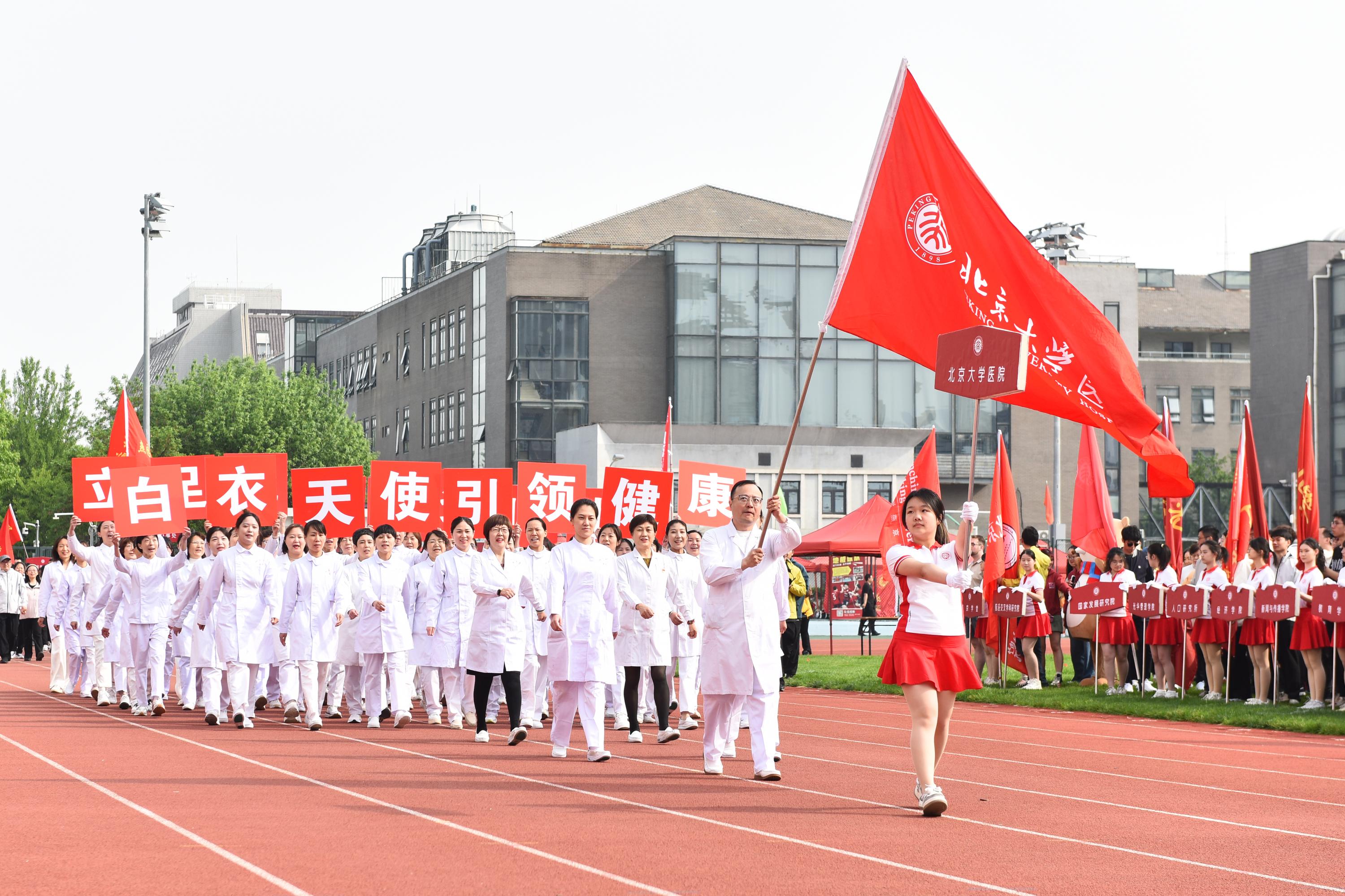 四月的校园万物逍遥,春光明亮,北京大学第32届体育文化节暨春季运动会在绿茵茵的五四体育场上拉开帷幕。校医院的工会职工在紧张的工作之余,传承校医院的光荣传统,积极参加各项比赛,在运动场上燃烧汗水与激情,绽放着青春与梦想。入场式,大家在党委书记兼工会主席朱建华、院长云虹的带领下,踏着坚实的步伐,英姿勃发,主席台前齐声高喊:“白衣天使 引领健康 立足北大 服务师生!”代表着守护全校师生健康安危的决心!