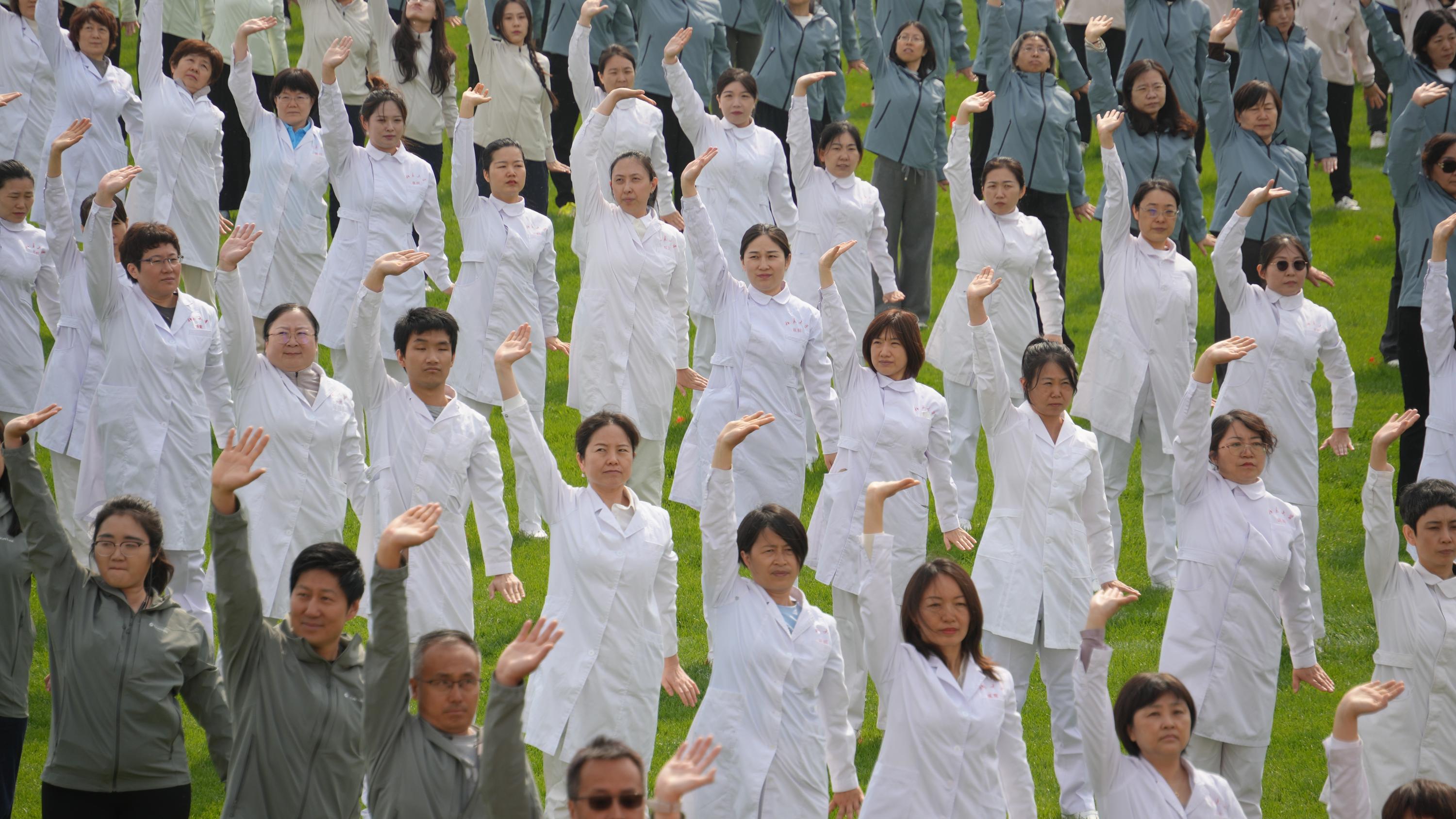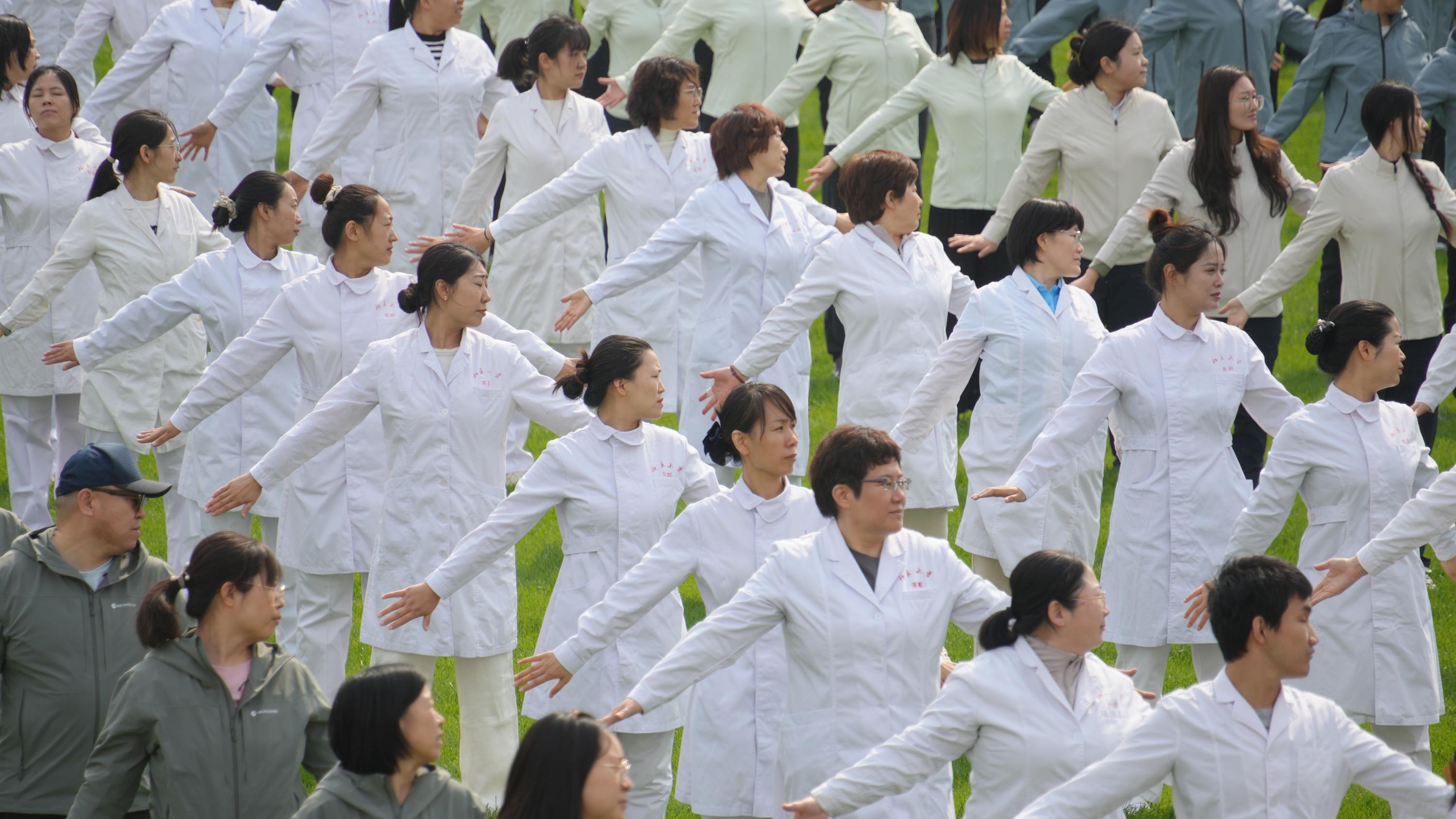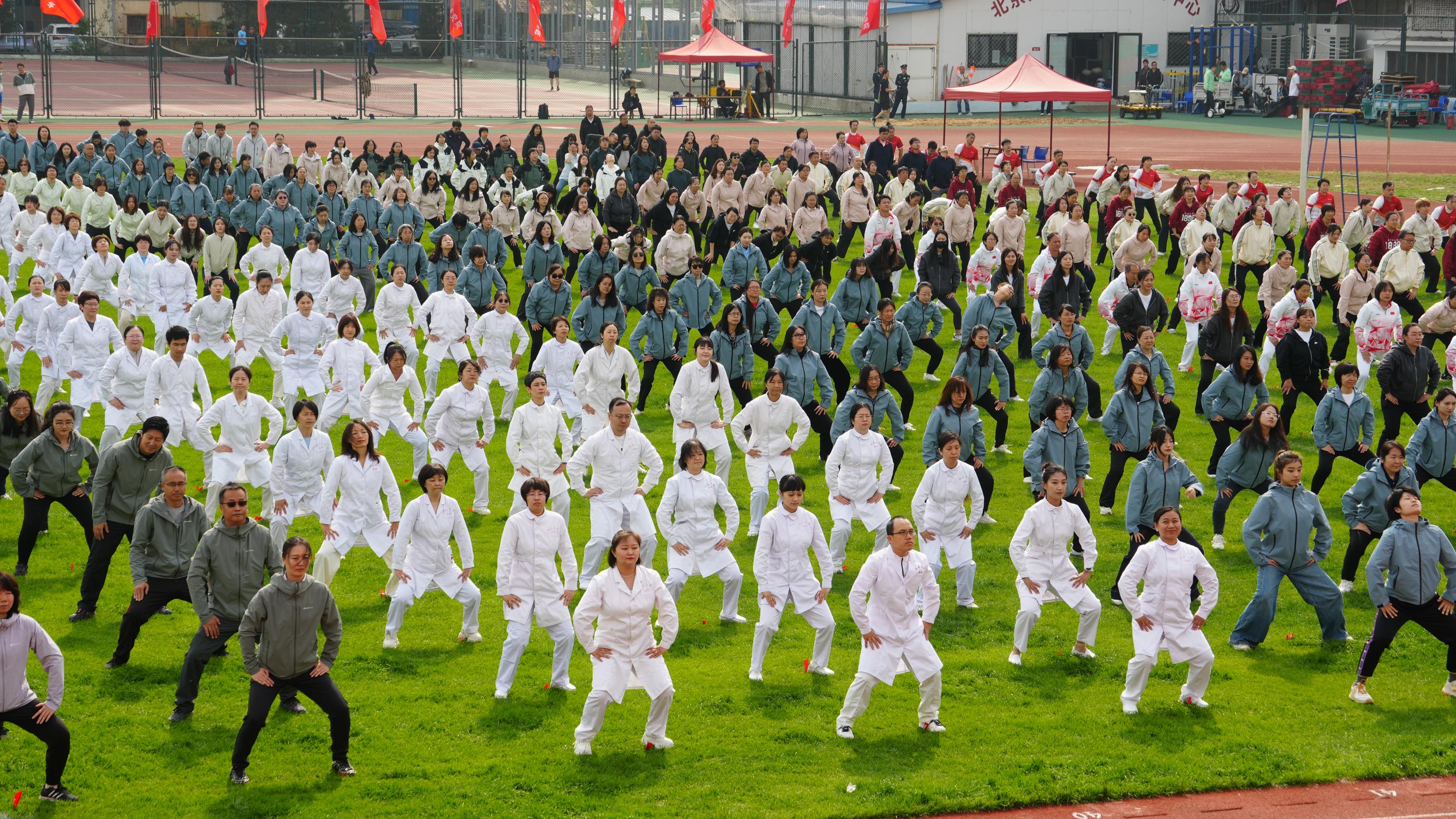 校医院80余人参与了大型八段锦团体操的表演,大家认真学习八段锦,以练促传,让传统功法焕发青春的活力。一呼一吸间,传统养生文化的种子悄然在现代都市的节奏中生根发芽。