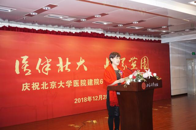 会议由党委书记朱建华主持。云虹院长致辞。云虹院长回顾了北京大学医院建院六十年来,医院人在各界院领导的带领和传承下,解放思想、顽强拼搏、实事求是、勇于创新的历程。从一片荒地到迁址重建,从二层小楼到现代化的综合大厦,从落后的医疗设备到精密的现代化仪器,从专科局限、人员局限到现在的多专科发展,大量引进高端人才。这风雨兼程的六十年也是不断创造奇迹的六十年。今年是北京大学医院的六十华诞,也必将是医院发展史上里程碑式的一年。