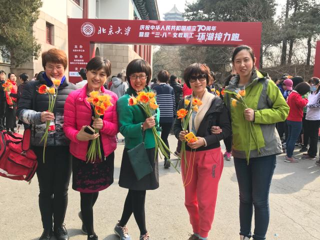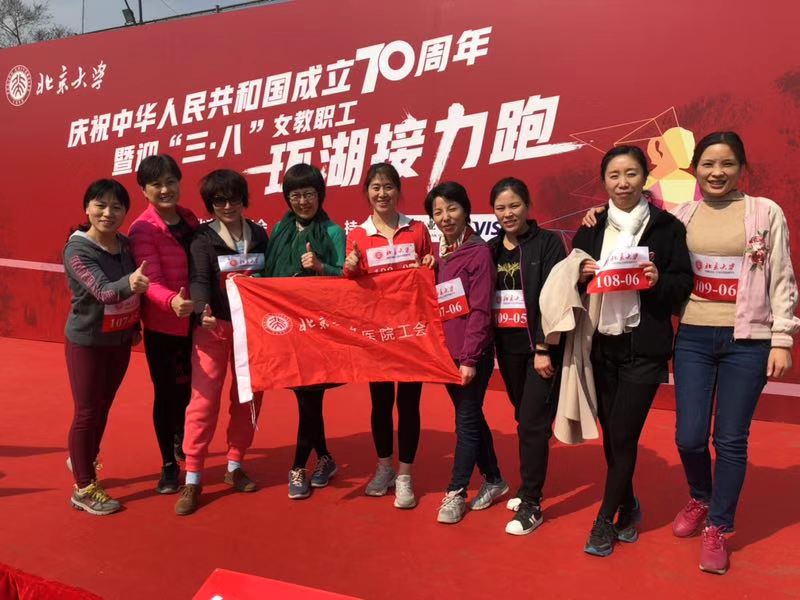 为了庆祝建国70周年,喜迎“三.八”国际劳动妇女节,营造全民健身的体育氛围,北大工会联合体育部秉承传统,在3月8日举办一年一度的“北京大学女教职工环湖接力跑”活动。校医院职工积极响应,以医院院长云虹、院党委书记工会主席朱建华为首,4个接力小组28个名额一两天的功夫全部爆满。