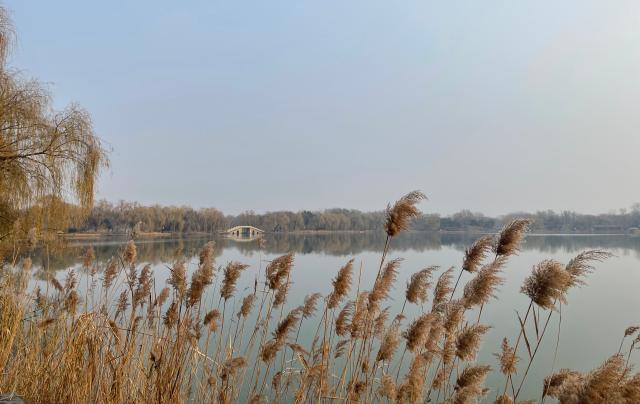 没有春天的百花盛开,没有夏天的曲院风荷,没有秋天的硕果累累,冬天的圆明园依然美不胜收。枯黄的垂柳枝丫,清澈的蓝天白云,倒映在薄冰的湖面,让我们沉醉在画里。大家漫步在湖边弯曲的小路边,静观圆明园冬日景色,美在静谧、美在纯真。那荷塘边的白杨、垂柳,在晨光中闪闪发亮,还有残荷的干枝,仍坚毅地挺立在冰面上启示人们,生命的活力!