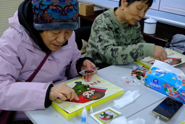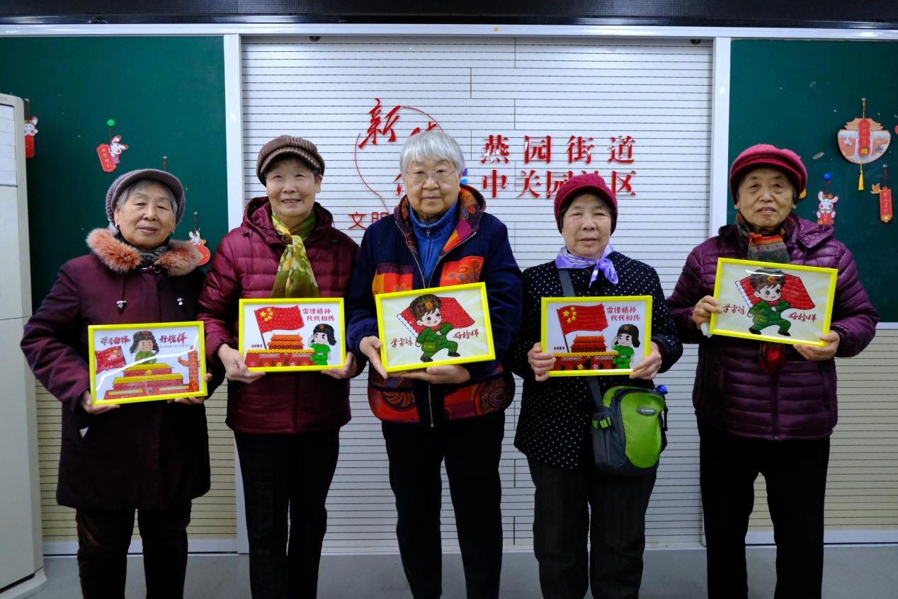 活动现场热闹非凡,居民们在轻松愉悦的氛围中,利用胶水、纽扣、卡纸等工具,耐心拼贴成一幅幅寓意深远的图画——迎风飘扬的红旗、雄伟庄严的天安门城楼与雷锋形象巧妙融为一体,构建了一座连接历史、现实与未来的桥梁,表达了他们对于红色文化和英雄楷模的敬仰。