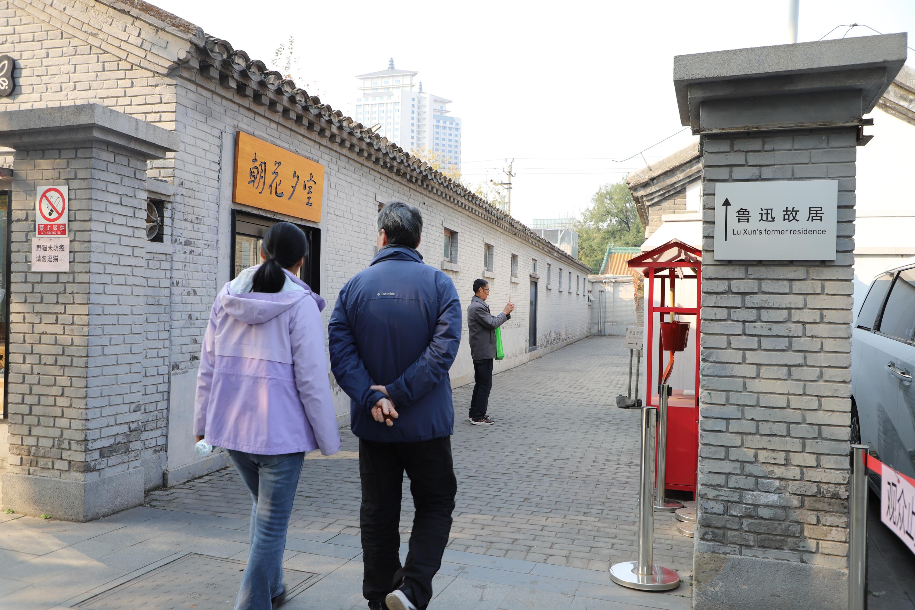 紧接着,一行人步行至鲁迅故居,实地探访鲁迅以笔为矛的生活岁月。故居院内的格局布置,室内的陈设展示,都保留了鲁迅当年居住时的模样。庭院中鲁迅亲手栽种的两颗白丁香树,如同他的思想和精神,历经近百年依然枝繁叶茂。在那间不足九平米的工作室里,他完成了《华盖集》《华盖集续编》《野草》等文集和《彷徨》《坟》《朝花夕拾》中的部分文章。房间里简朴的三屉桌、高脚煤油灯、毛笔、砚台、文具……让大家仿佛穿越时空,望见他在孤独、寂寞和彷徨中顽强战斗和不断探索,对民族未来不懈追求的身影。
