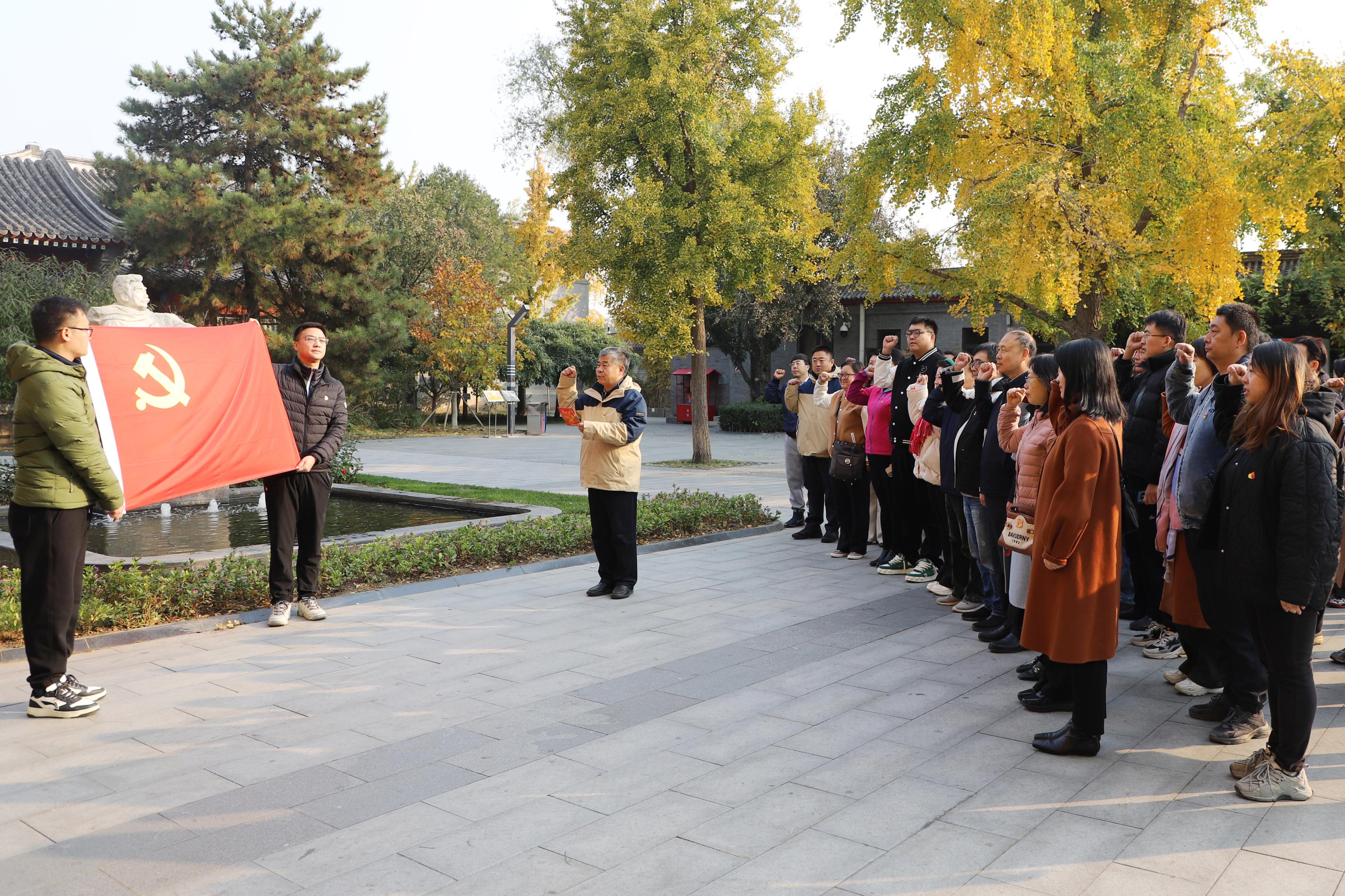 北京鲁迅博物馆位于北京市西城区阜成门。走进博物馆,映入眼帘的是一个清静优雅的中式小院,院子中央是鲁迅的汉白玉半身雕像,他若有所思地望向远方,神情平静且深邃。在雕像旁,街道党工委书记姜晓刚带领大家面向党旗重温入党誓词,进一步激发了全体成员的责任感和使命感。