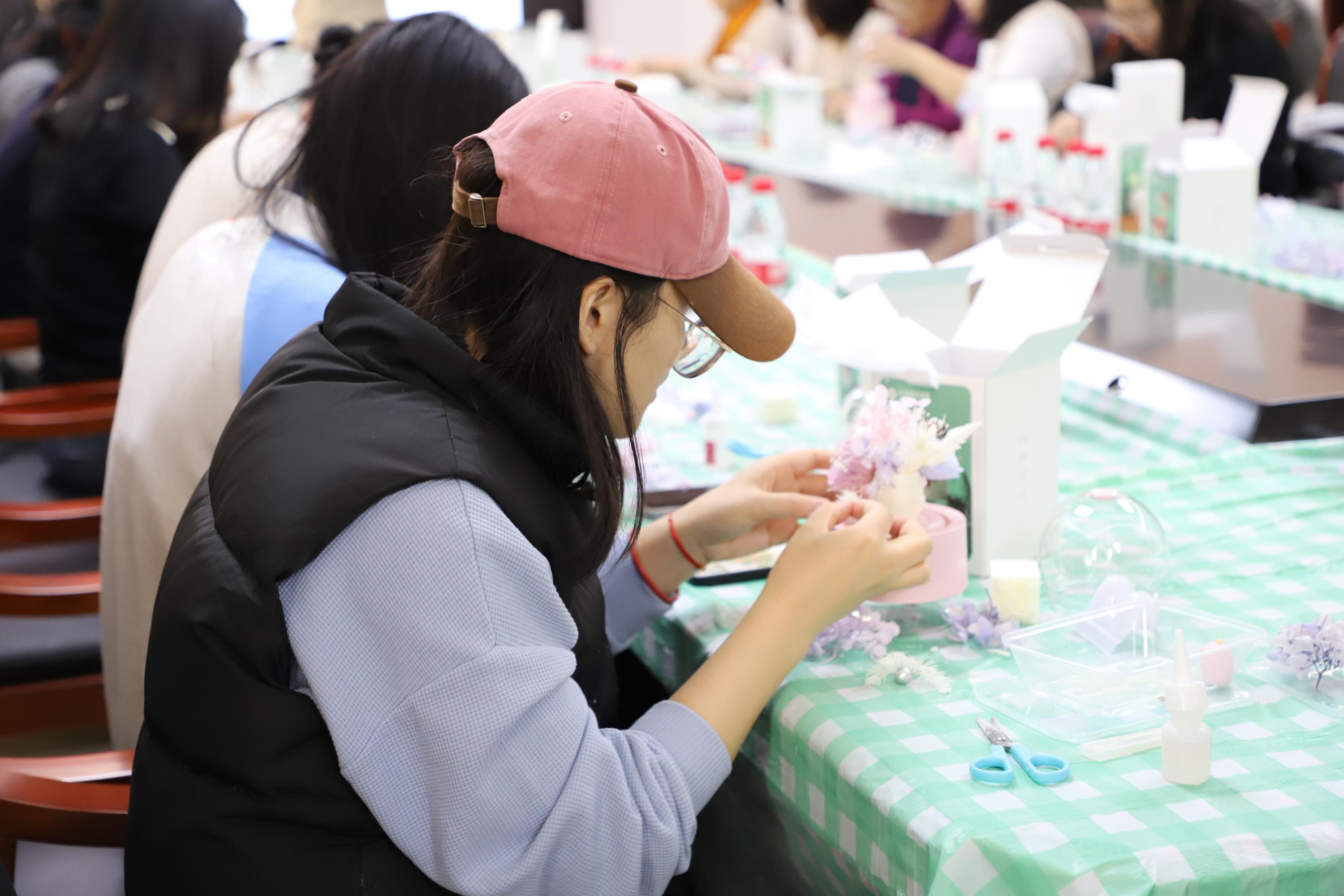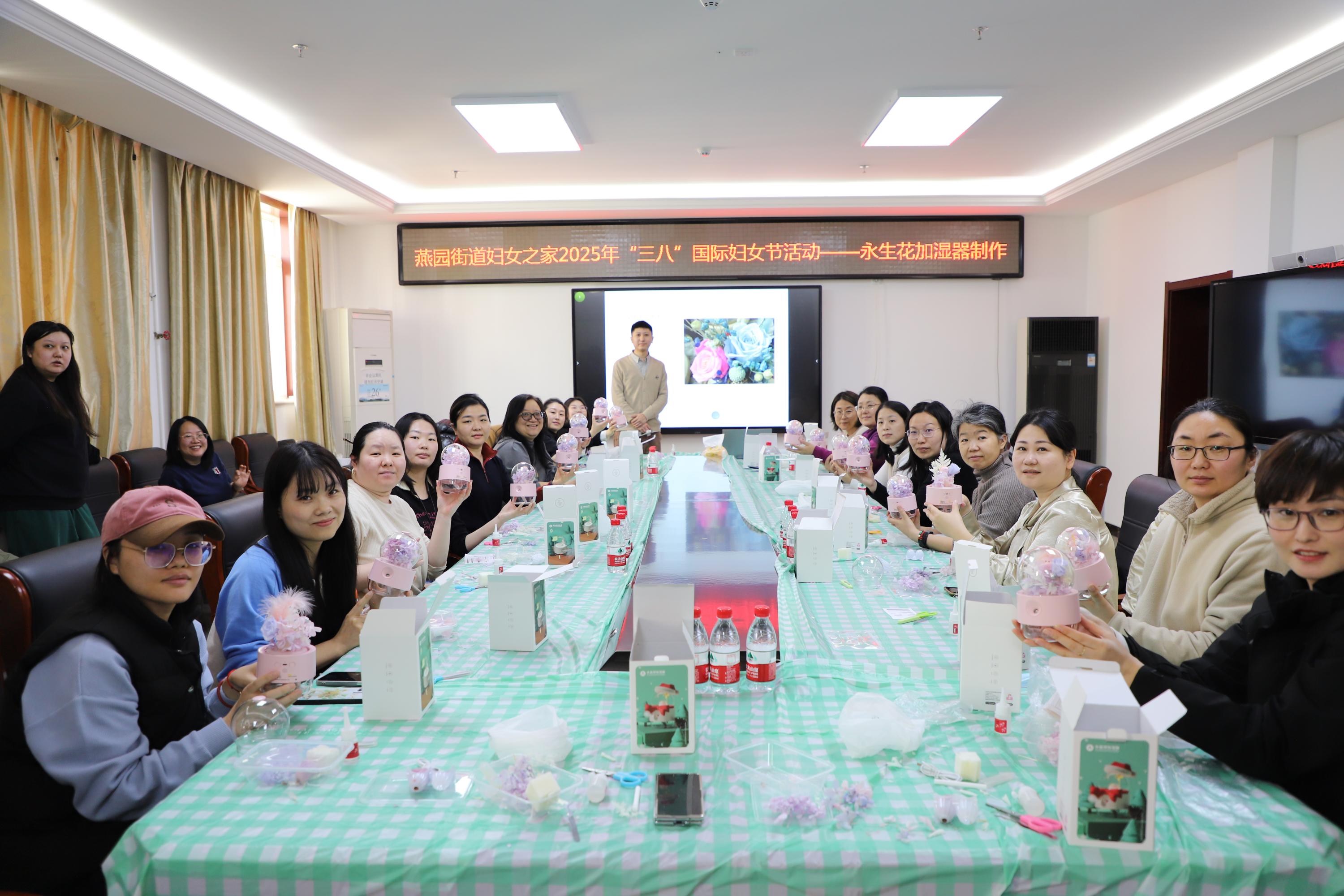 在“三八”国际妇女节即将来临之际,燕园街道妇联联合工会为关爱女职工,缓解其工作压力,丰富业余生活,举办了一场别开生面的“永生花加湿器”手工DIY活动。