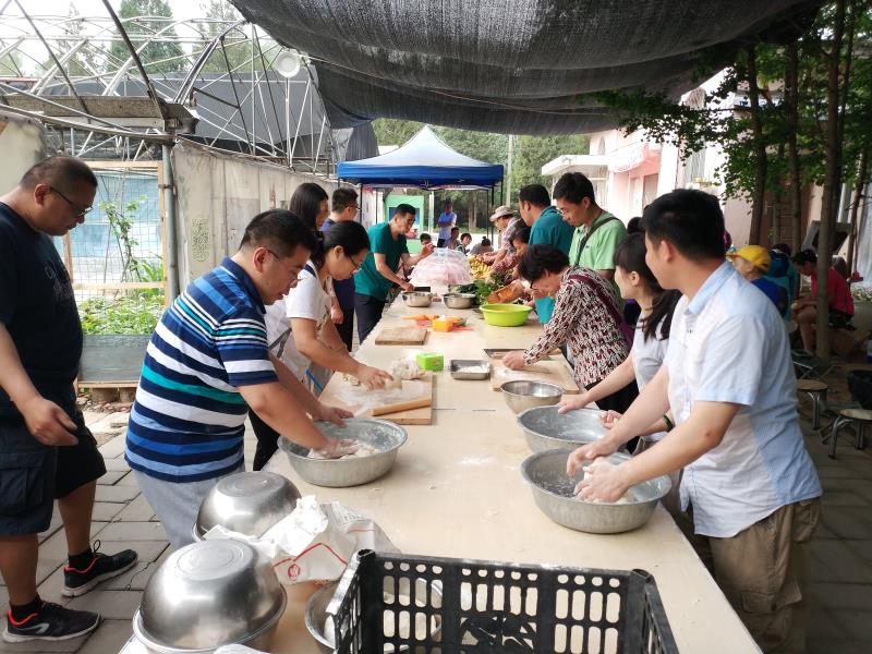 活动当天,家长和孩子们来到了昌平区郎兴教育农机试验站,共同拥抱初夏的大自然。孩子们在父母的陪伴下参观小动物园、拔牧草,并在地里体验劳动,经过翻整土地、施肥浇水、菜苗移栽,孩子们劳动的很开心。家长们也各司其职、齐心协力地为孩子们准备着可口的午餐,一个多小时后,美味的菜肴上桌了,孩子们愉快地品尝着美食。“嗯,这顿饭好香!”看到孩子们吃得高兴,家长们脸上洋溢着幸福的笑容。饭后孩子们还展示了才艺,进行了背靠背夹气球接力赛,吃西瓜比赛和拔河比赛。