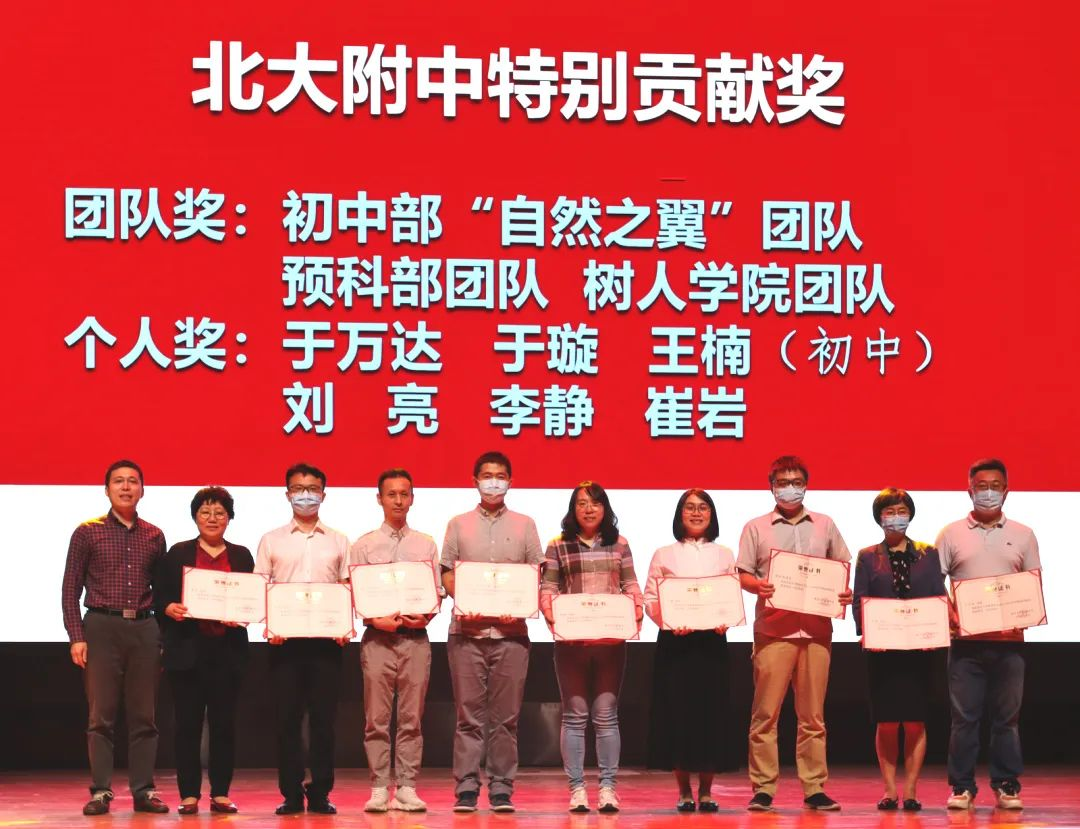 北大附中党委书记王亚章为获得北大附中特别贡献奖的团队和个人颁奖