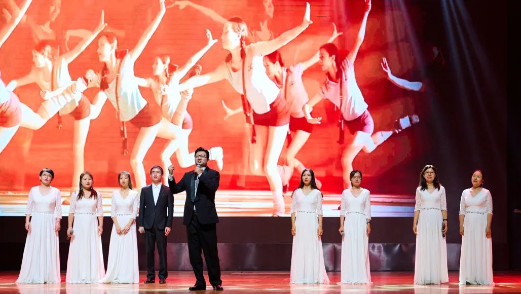 教师合唱团带来《越人歌》与《绒花》合唱演出。歌声悠扬,唱出了对每一位在岗位上默默奉献的教职工同仁们的祝福与感念。