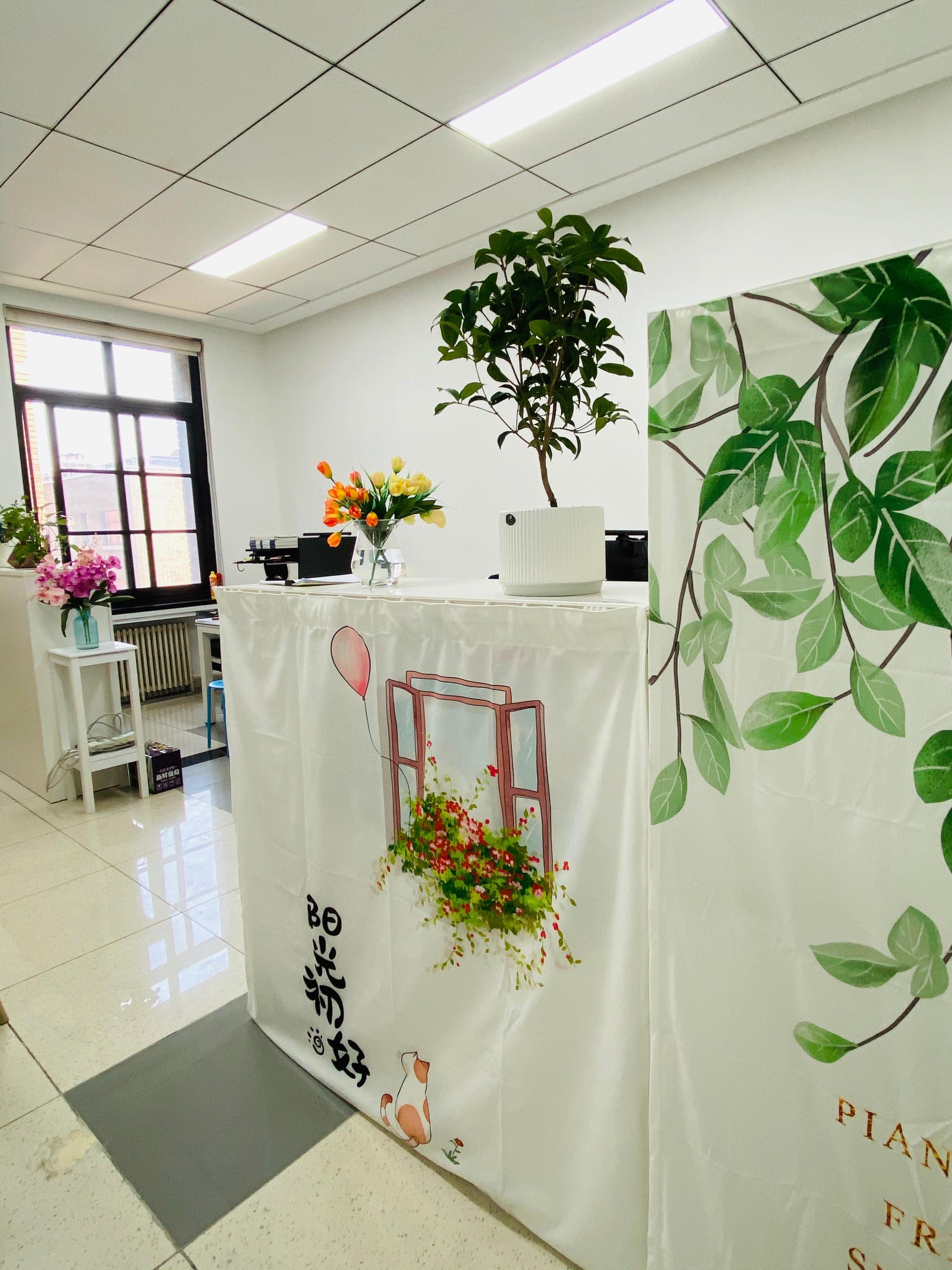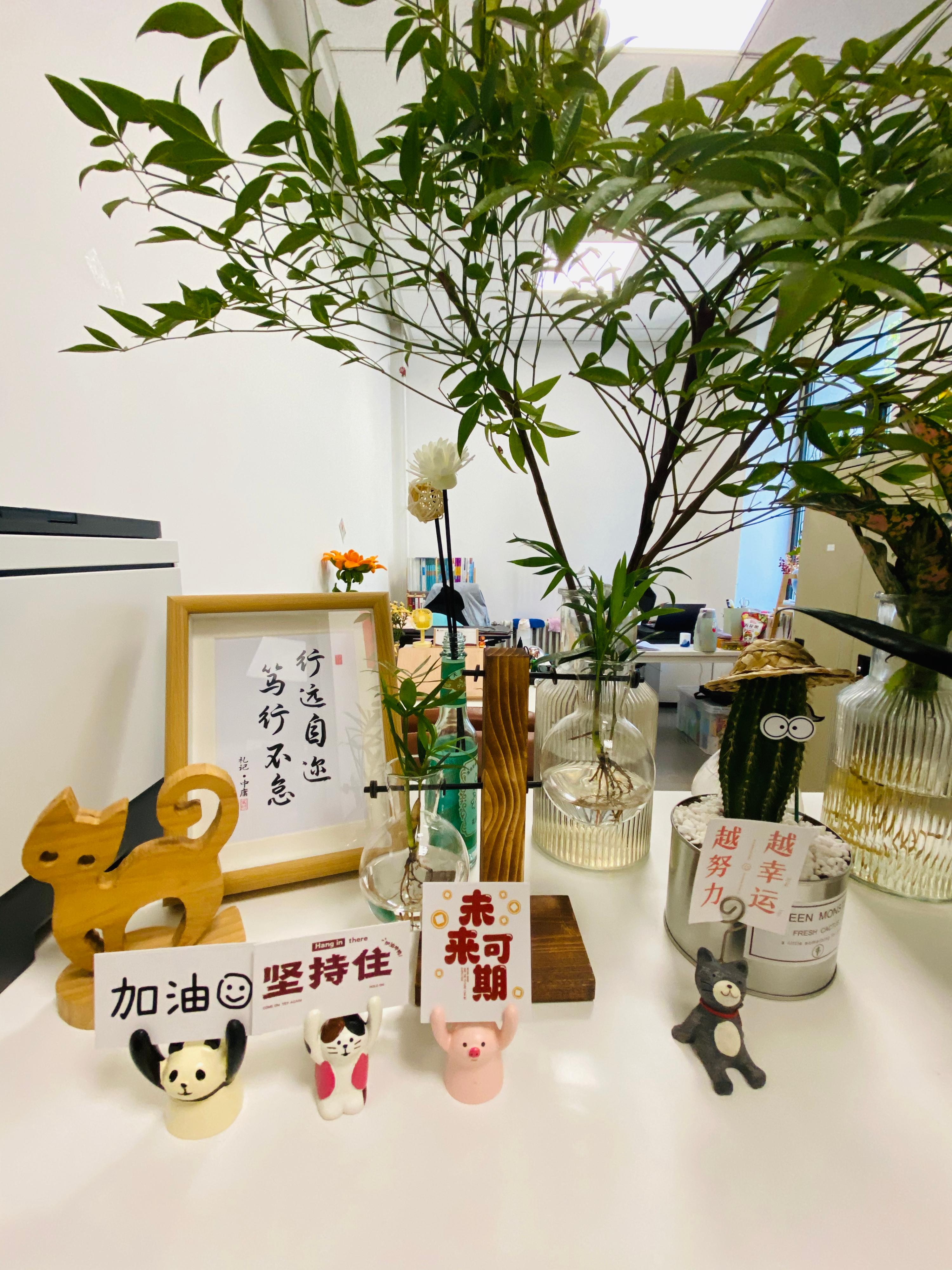 不同学科的办公室布置体现着学科特色,语文老师的办公空间有中华传统文化的元素,体现了老师们的人文情怀;英语老师的办公室更有国际视野,开放的胸怀体现在一草一木中;地理老师的办公室用地图、地球仪装点,历史老师的办公室给人一种穿梭在时间隧道的感觉,生物老师的办公室更加贴近自然等等。