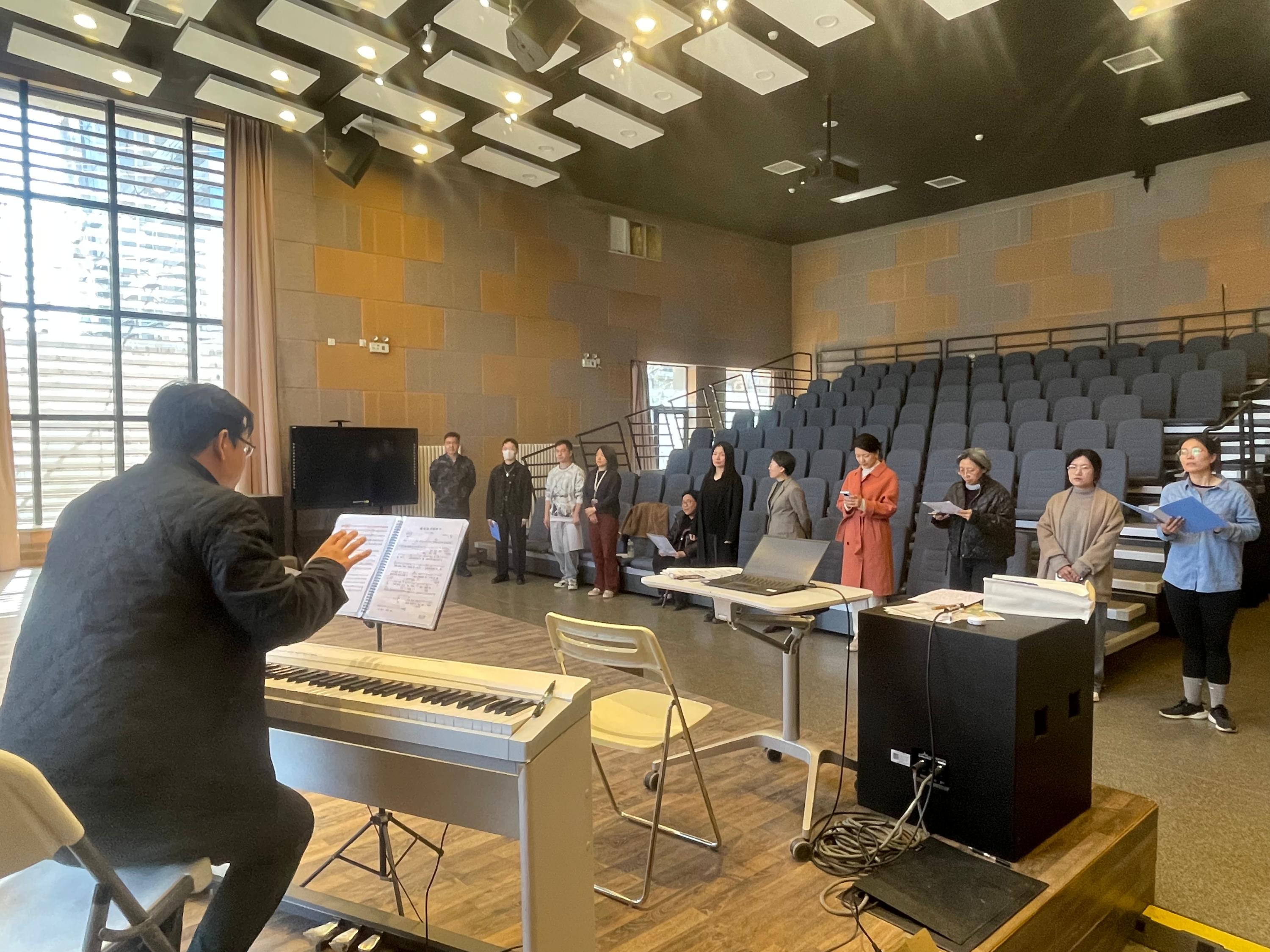 感谢学校提供的机会,可以和王老师学习演唱技巧。每次练习的过程都像是在练习正念,关注自己的声音、发音位置、效果,每次都是一次奇妙、新奇的自我认知之旅。我也很喜欢王老师为大家精选的曲目,古诗新唱(例:《锦瑟》),歌颂爱国情怀(例:《如愿》)。合唱团越来越壮大,能结识很多学校其它部门的老师们,是个非常推荐的活动。