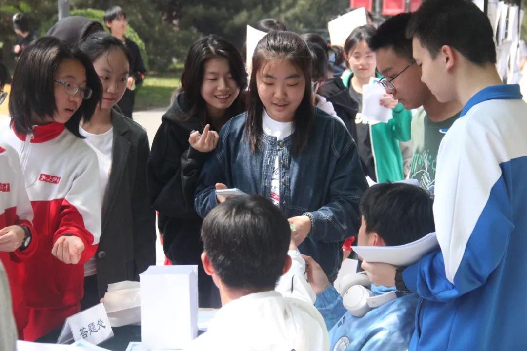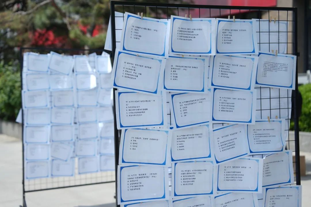 正午阳光透过银杏枝叶洒落,4组趣味答题展架上题目页迎风招展,欢迎答题人将自己领走。从《红楼梦》人物判词到航天科技冷知识,从历史朝代年表到生物多样性谜题,从“世界读书日”的起源到电子书的类型,几百道跨学科题目如散落书页的密钥,等待师生与物业同仁以智慧拾取。