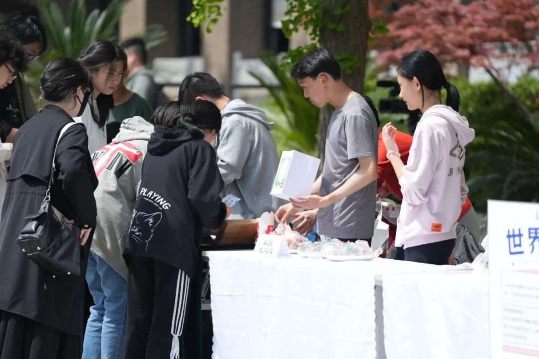 春风翻书页,银杏映韶光。2025年4月16日午间,西楼前广场的银杏树舒展新绿,由图书馆与工会联合主办的“书香校园 阅动青春”图书知识有奖竞猜活动在此热烈开展。