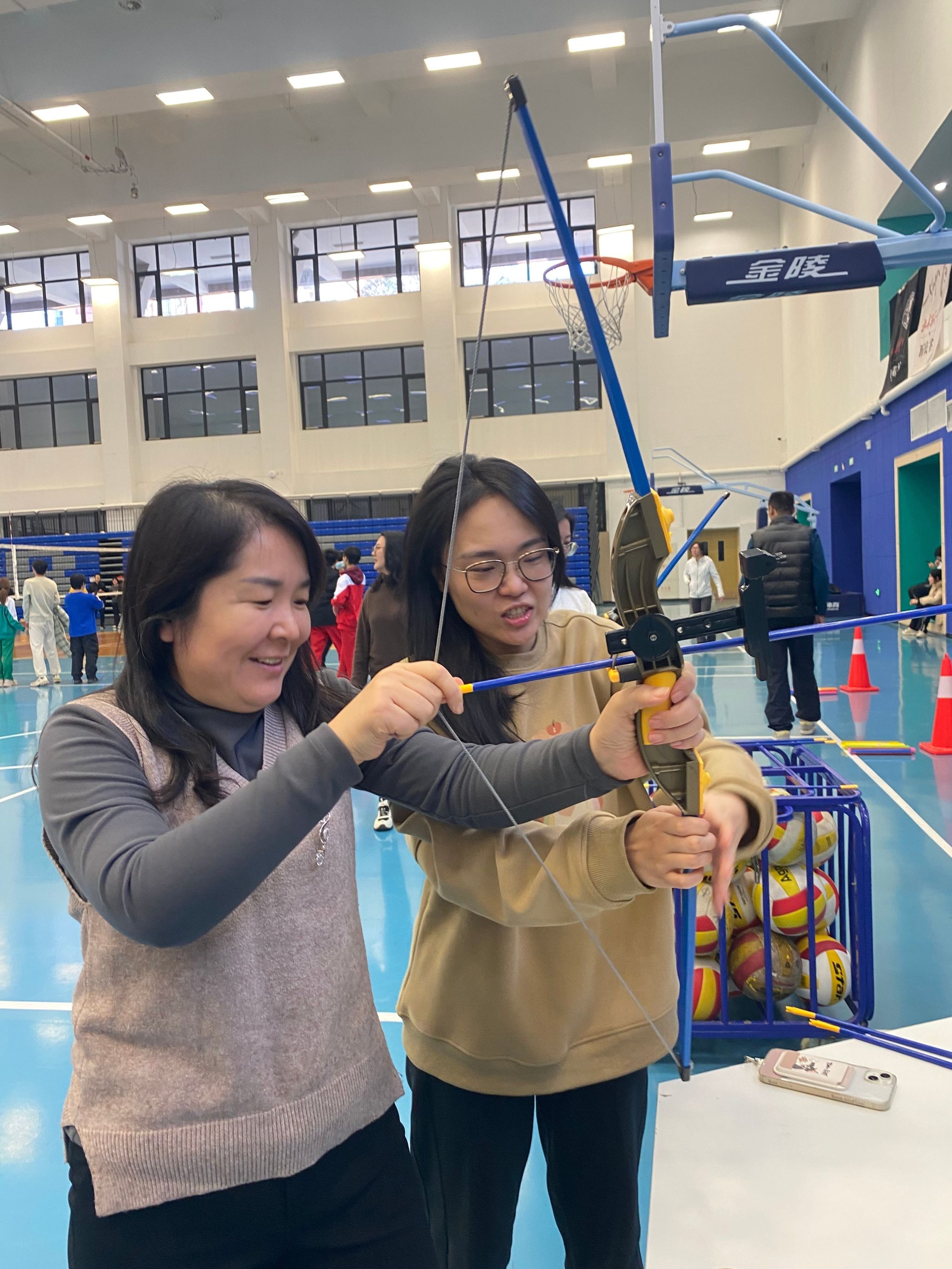 抖空竹项目需要参赛者学习1-3个阶段的空竹花样,能够率先完成1-3阶空竹花样的参赛者获胜;母鸡下蛋的规则是参赛者在腰部绑一个特制盒子,盒内装有10个乒乓球。参赛者通过扭腰、跳跃等动作,在1分钟内尽可能多地将乒乓球从盒子末端的洞口抖出,将所有乒乓球抖出用时最短者获胜,总时长1分钟,抖出乒乓球多者获胜。安全头盔的游戏规则是锤子和头盔放在两人中间的桌面上,裁判发令后,两人通过 “石头、剪刀、布” 来决定胜负,赢家迅速拿起充气锤子,攻击输家的头部,输家迅速拿起安全头盔,戴在自己的头上进行防御,在固定时间内(如60秒),成功击中对方次数多者获胜;射箭的游戏规则是每人射五支箭,站在距靶盘6-8米处的指定位置, 按照靶盘环数(1-10环)计算总成绩,环数高者获胜。如环数相同,则看单箭最高环数。趣味保龄球需要参赛者站在10米线后,用足球踢标记瓶(10个矿泉水瓶摆成的三角阵型),单次击倒数量多者胜。