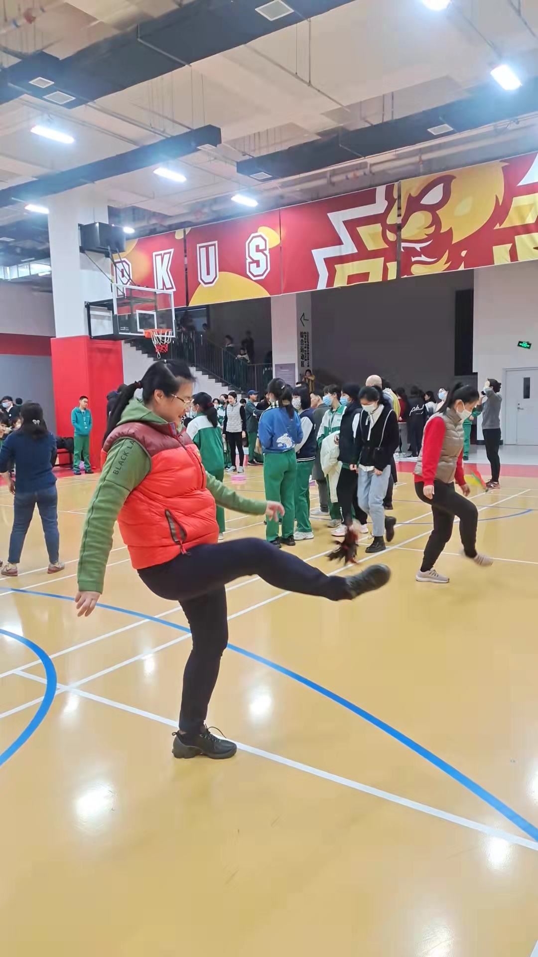 在毽球区,小小的毽子上下飞舞,学生们的眼神儿也跟着毽子一上一下,在赛场上的老师也努力的踢着每一个毽子,把最好的表现呈现给孩子们。