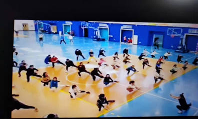 运动会前,校舞蹈老师带领老师们进行热身运动,较好地活跃了氛围,也让老师们为运动会的开展做足了准备。