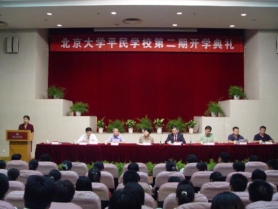 北京大学平民学校第二期开学典礼9月13日下午在图书馆北配楼举行。北京大学党委书记闵维方,副校长、工会主席、平民学校校长岳素兰,教育部职业技术教育研究中心主任余祖光等领导出席了开学典礼。