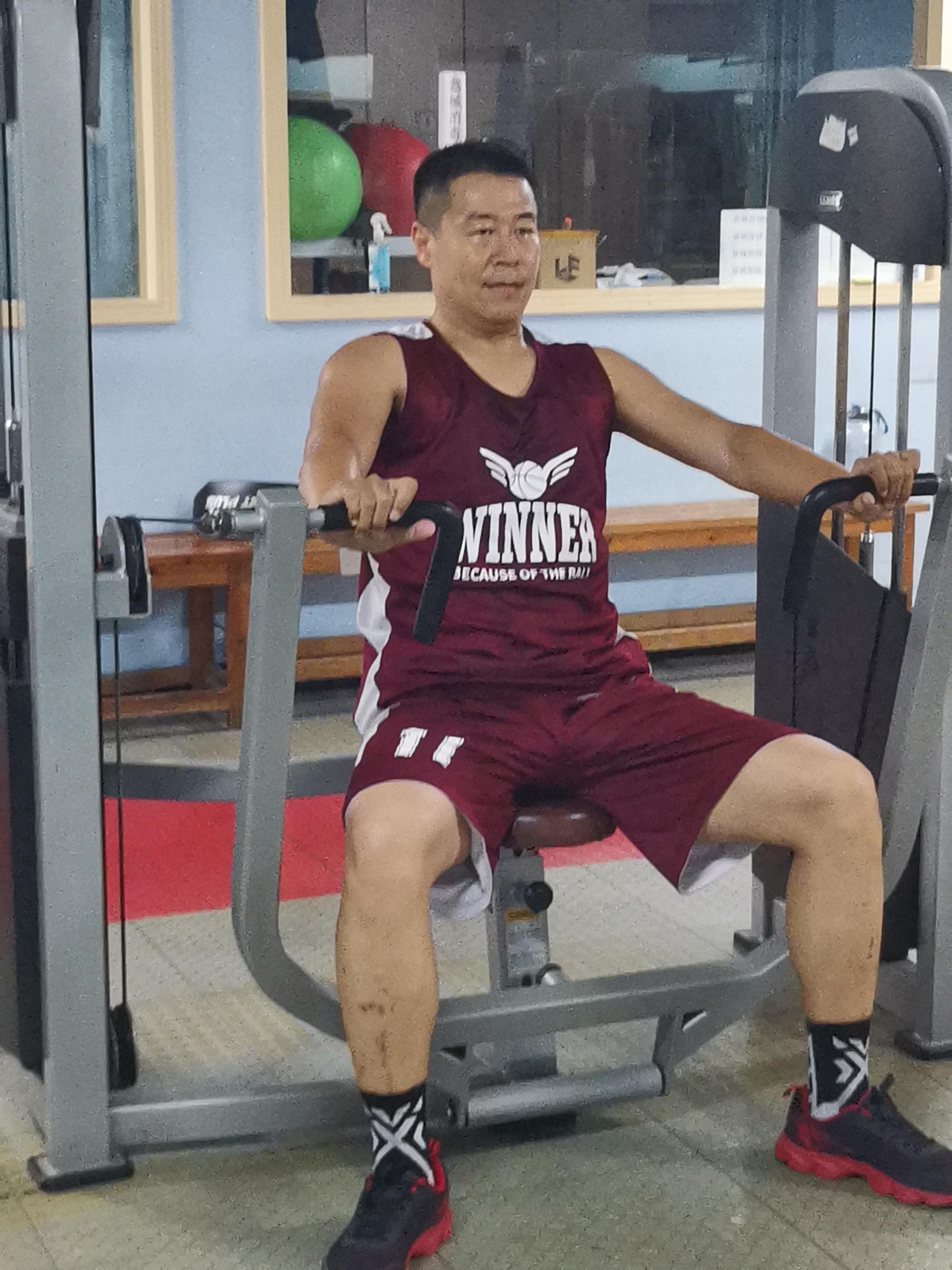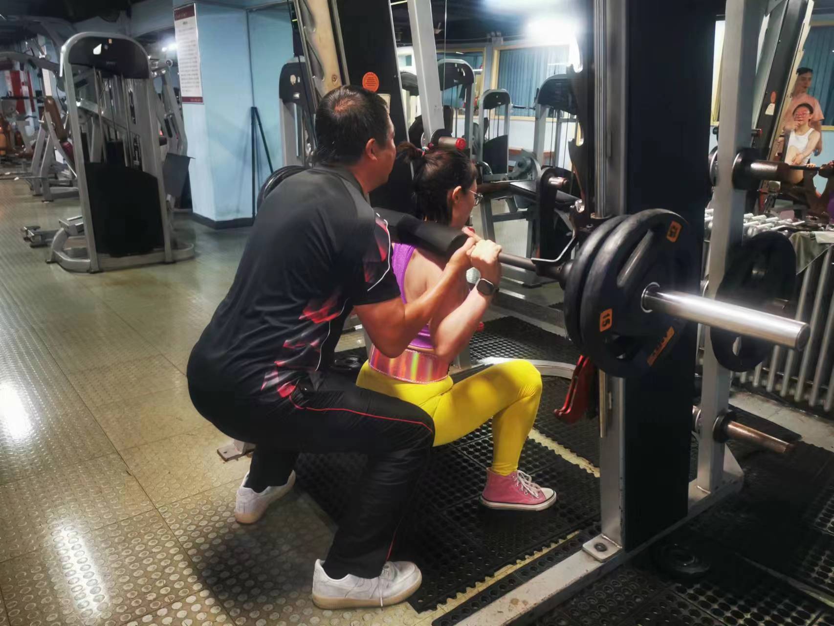 协会教练组结合每个老师的特点,在上肢力量训练中安排了杠铃卧推、助理引体、高位下拉、坐姿划船、哑铃侧平举、绳索臂屈伸、哑铃弯举、上斜卧推等动作。在下肢力量训练中安排了杠铃深蹲、负重箭步蹲、坐姿抬腿、俯身屈腿、倒蹬、坐姿腿外展及坐姿腿内收等动作。在训练过程中,老师们积极认真,全力以赴,遵从教练的指导,完美的完成了每次的训练计划,练出了效果,练出了自信。