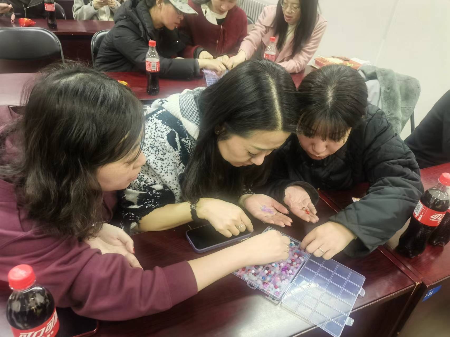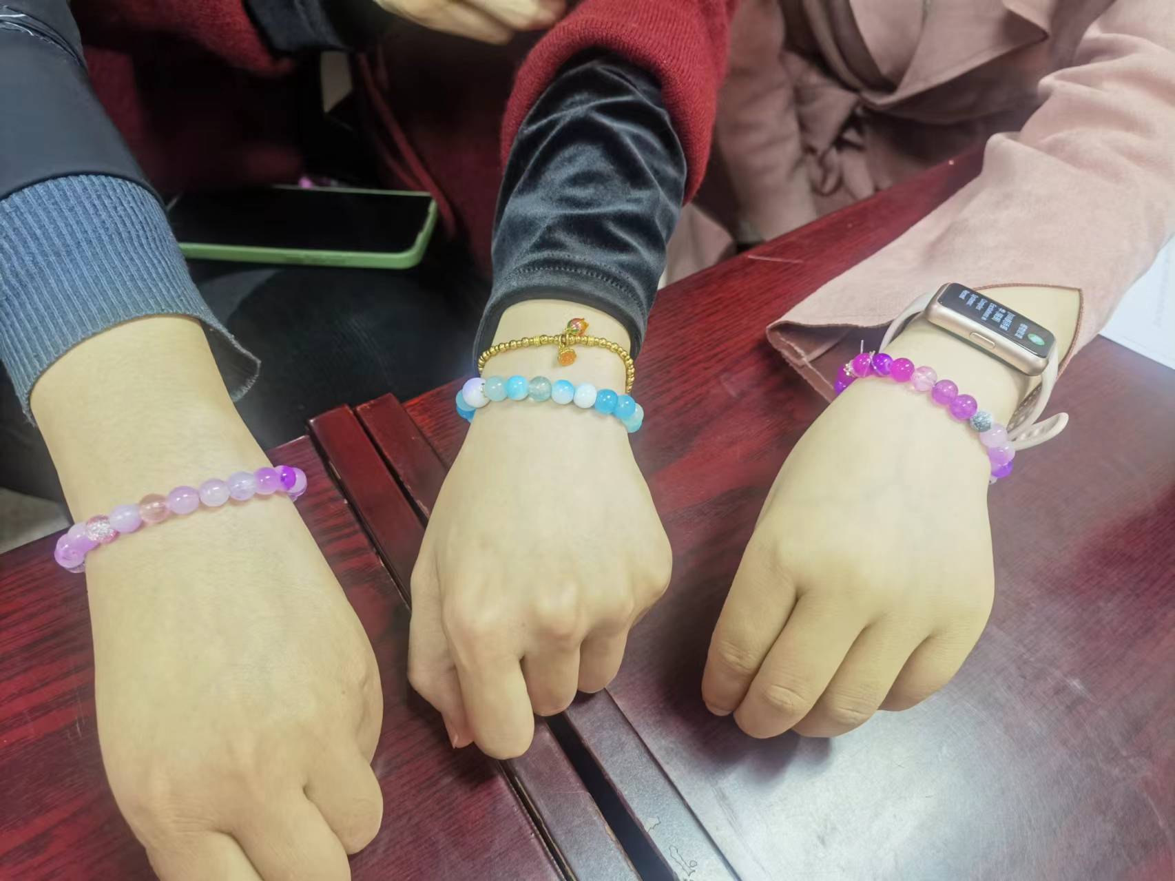 老师们在畅所欲言、群策群力,力求设计出美轮美奂的手链