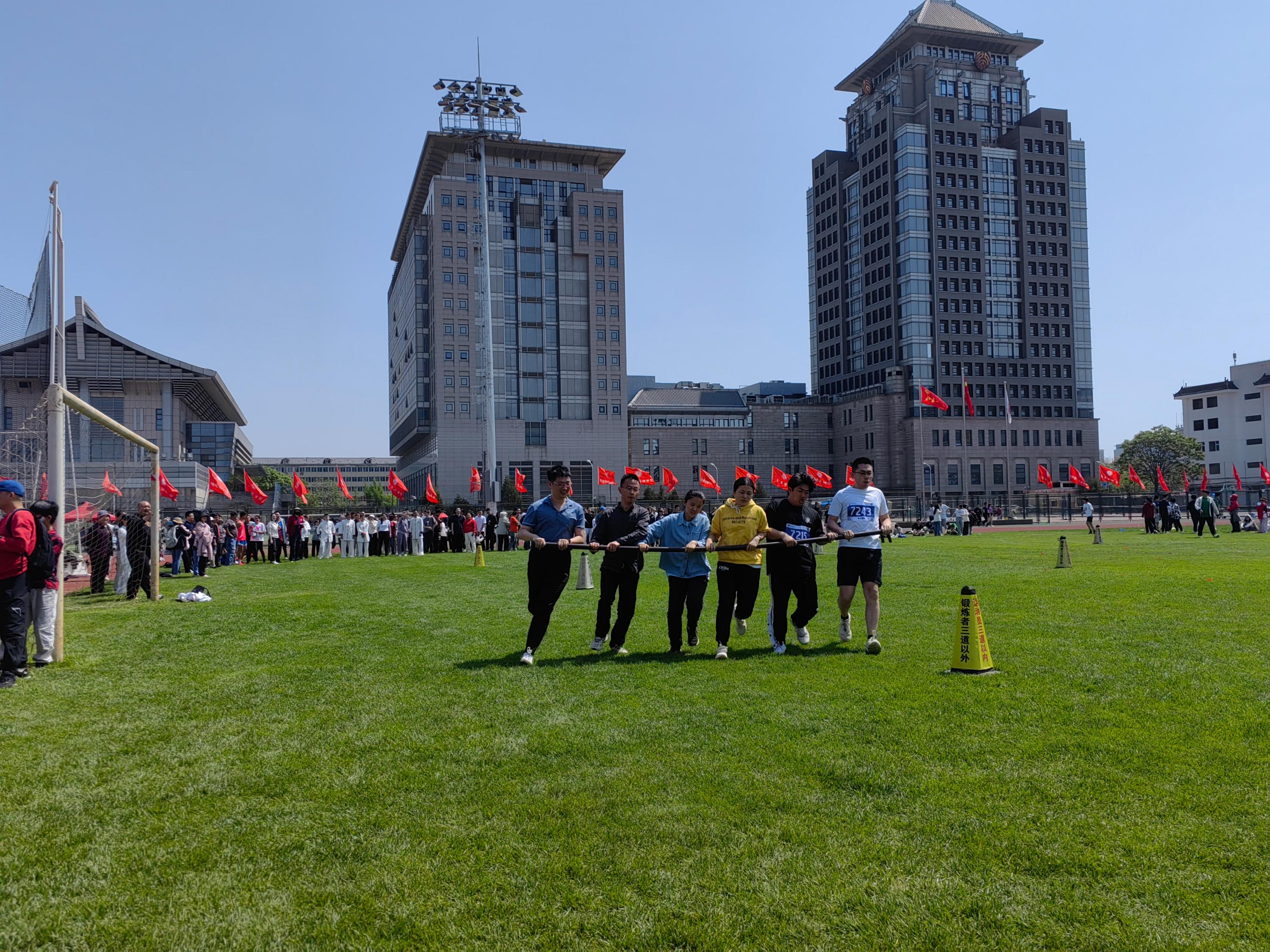 在烈日下努力“旋风跑”的电子学院老师们