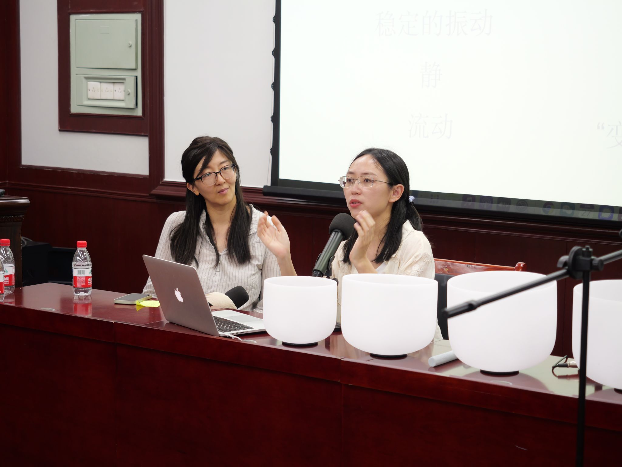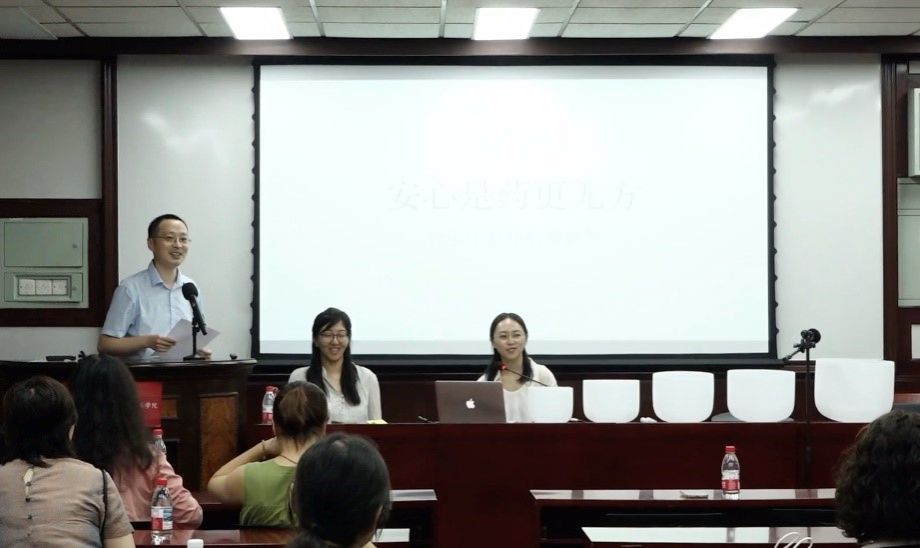 6月27日,北京大学电子学院工会在理科一号楼1131报告厅举办“安心是药更无方:音乐疗愈与精神世界”讲座。活动由非营利组织Mindful Musicians创始人、音乐疗愈师籍丽媛主讲,清华大学颜静老师互动主持。电子学院张嘉楠老师首先对籍丽媛老师进行介绍,并欢迎她来到北京大学开展讲座。讲座从音乐疗愈的哲学与身心科学基础出发,结合现场演奏与参与式练习,带领听众在声音与呼吸之间感受情绪与心态的变化。