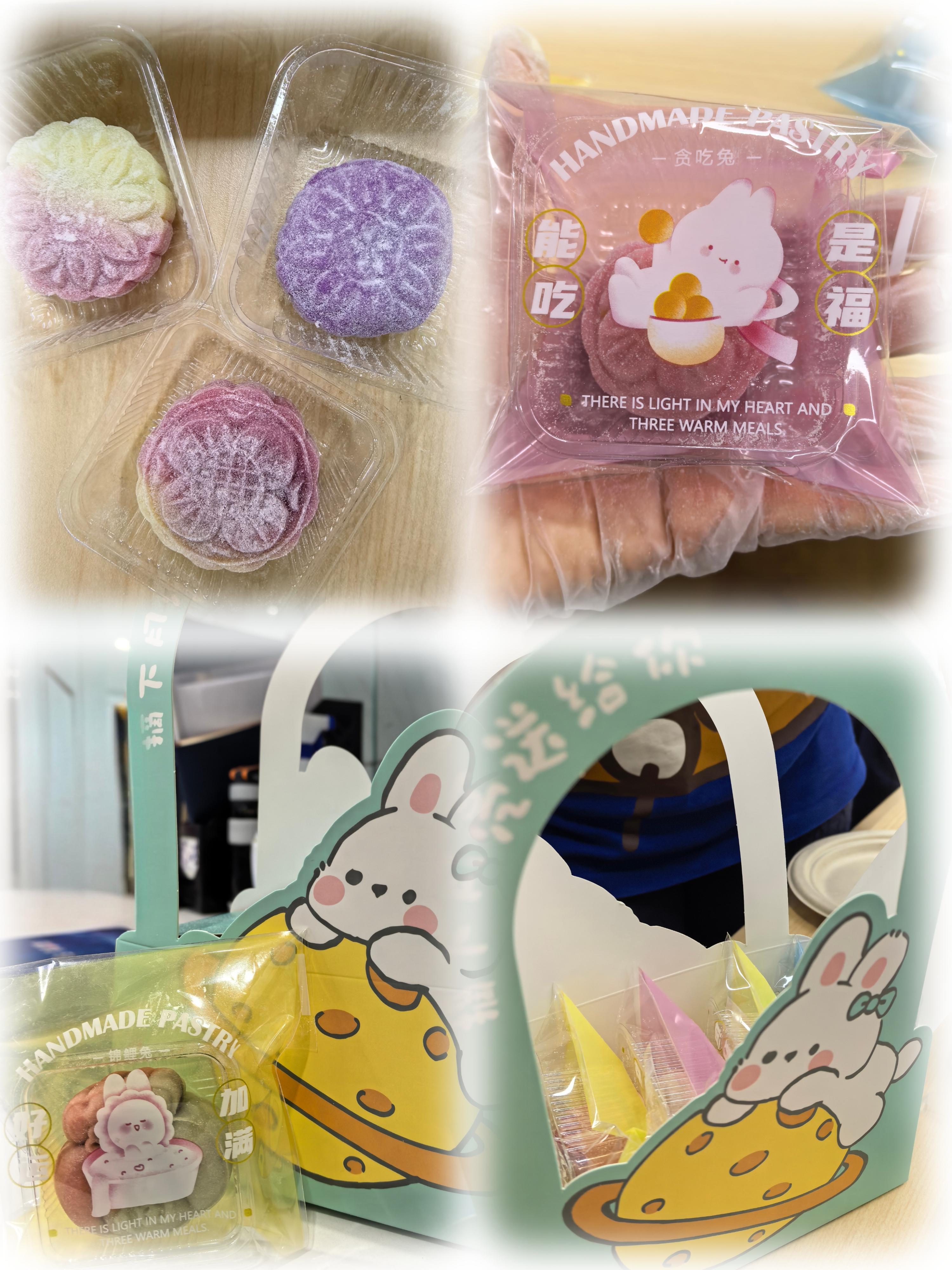 学院工会为老师们准备好丰富的制作材料——预拌粉、各式馅料、天然果蔬粉、月饼模具等。平日里深耕科研老师们,此刻纷纷化身“糕点师”,满怀热情地投入到月饼制作中。