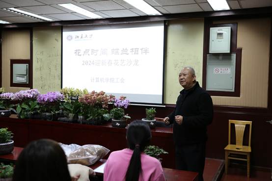 活动伊始,工会副主席刘旭东老师热情地欢迎大家的到来,看到老师们对鲜花的喜悦之情,溢于言表,他表示,以后会多多开展此类活动。接下来,由此次活动的主要策划人工会女工委员王昭老师简要介绍了此次活动的目的和流程。为了让老师们对花卉制作有更直观的了解,她特意准备了一段关于如何进行花卉制作的教学视频。视频中,一位资深花艺师详细介绍了蝴蝶兰的养殖方式以及制作组合盆栽的相关方法。老师们聚精会神地观看,不时发出赞叹之声,对蝴蝶兰的优雅姿态和组合盆栽的创意之美表现出了极大的兴趣。