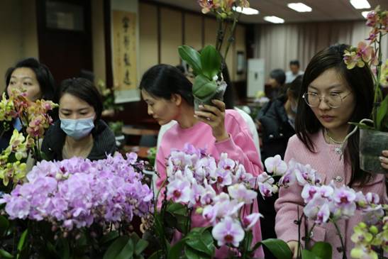 随着视频的结束,活动进入了激动人心的选花卉环节。学院工会在活动前,精心为大家准备好了4-5种不同颜色的蝴蝶兰。这些花朵色彩斑斓,争奇斗艳,仿佛是大自然中最绚烂的调色盘。老师们纷纷围在花卉旁,仔细挑选着自己心仪的花朵。有的老师偏爱纯洁无瑕的白色蝴蝶兰,有的则钟情于热情奔放的红色或神秘高贵的紫色。在视频讲解前,工会还为各位老师选择了鹅掌柴作为组合盆栽的配角,以期达到更加和谐美观的效果。