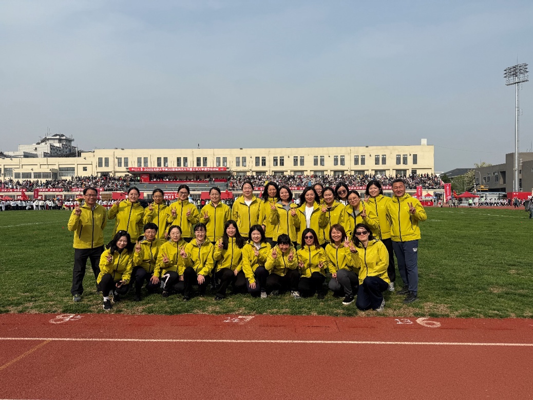 李宁、傅晓燕,邹雨錡、刘梦、谢金、方婷、王雪梅、赵雅卉、张泽佳、蔡旻恩,李鑫,梁晓航,黄永贵,苗译文、李晶、赵瑞颖、付辰华、姜婉莹、付晓艺、李辉、姜萍萍、冯慧敏、苗译文、李真、韩振飞教师在团体操项目合影