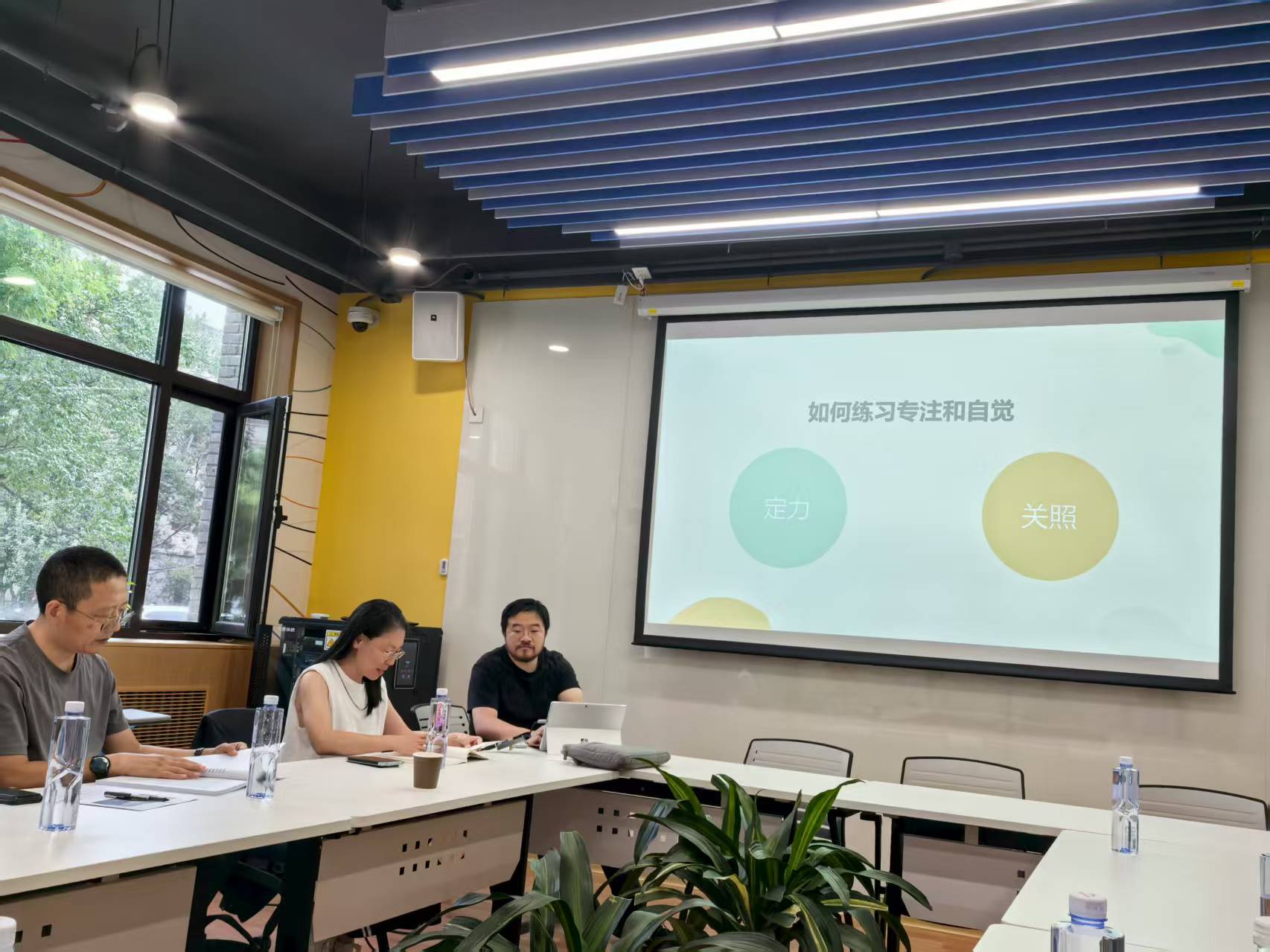 2025年9月16日,北京大学教职工博雅正念读书分享会在燕京学堂113教室成功举办第二次活动。读书会由钟灿涛老师主持,正念课程授课教师孙战龙参加,多位情绪困扰的正念干预(MIED)八周课的优秀学员参与。本次活动围绕正念经典著作《正念:此刻是一枝花》展开,通过深度导读与自由交流,共同探索正念修习的精髓与实践路径,现场气氛热烈,讨论富有深度与启发性。