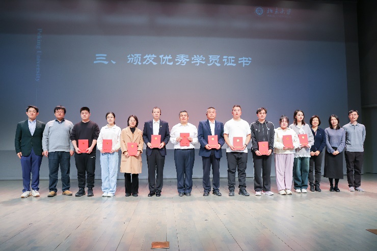 出版社工会干部雷瑞芳、前沿交叉学院院团委常务副书记潘子雄等平民学校合作单位代表,第一医院工会常务副主席杨斌,人民医院工会副主席王志强,第三医院工会常务副主席刘温文,文安公司驻北京大学保安大队副大队长张国强,餐饮中心综合办公室主任、工会主席甄涛,动力中心计划修缮科主任、工会主席张海峰,附属幼儿园蔚秀分园园长韩巧巧,人民医院工会干部李晓园,口腔医院工会干部李赛等学员所在单位相关负责人一同出席了典礼。